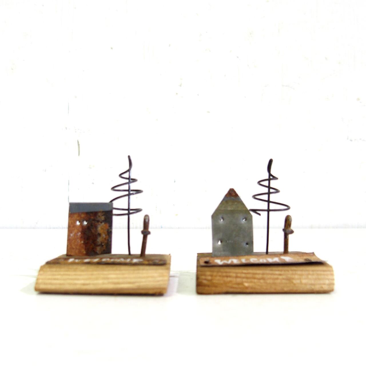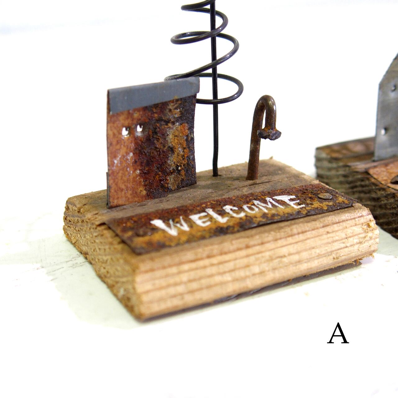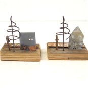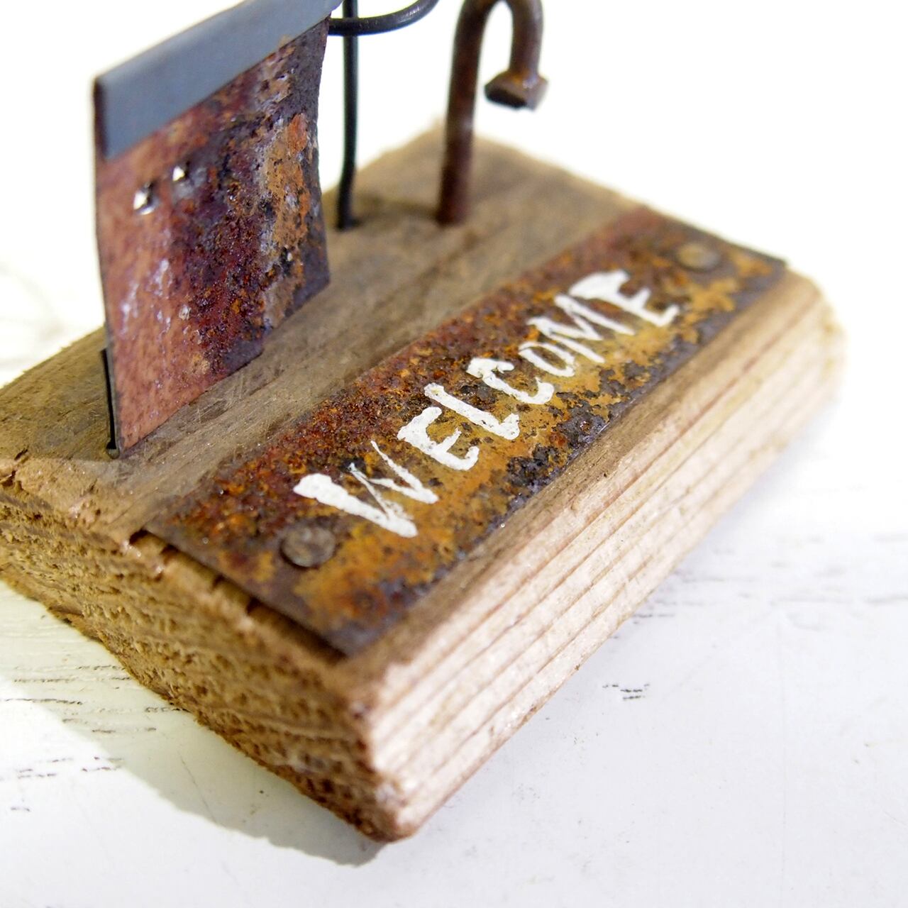 サビサビのブリキのお家を古材に差し込んだオブジェです♪