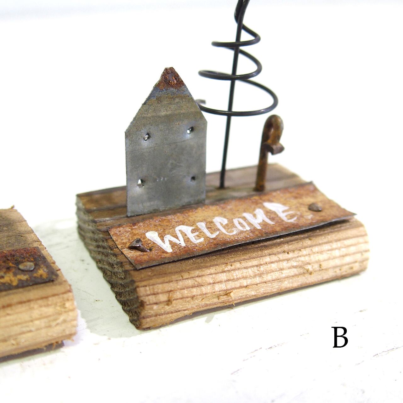 ワイヤーの木と、サビクギの街灯、ブリキのウェルカムプレートも付けて。