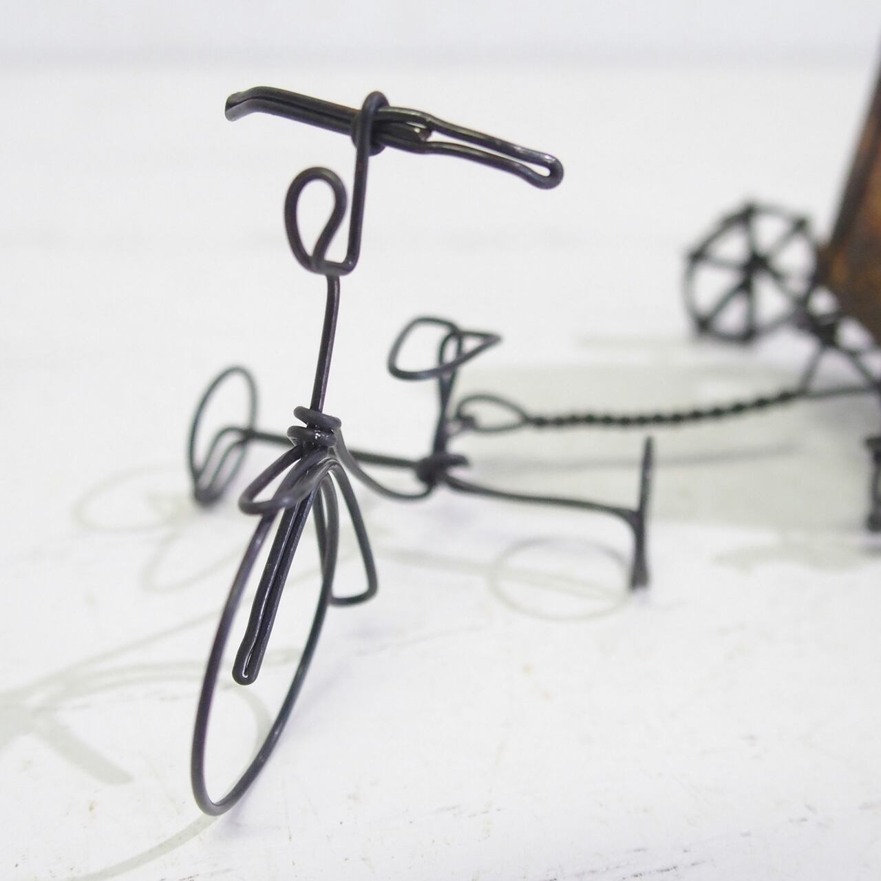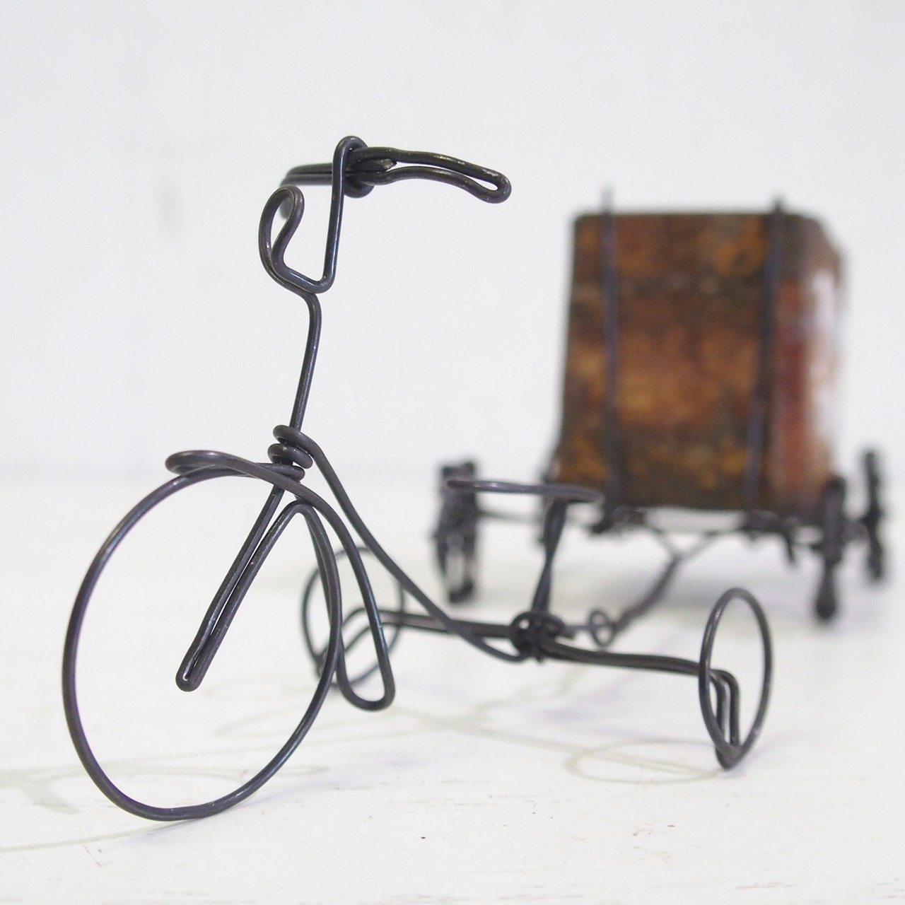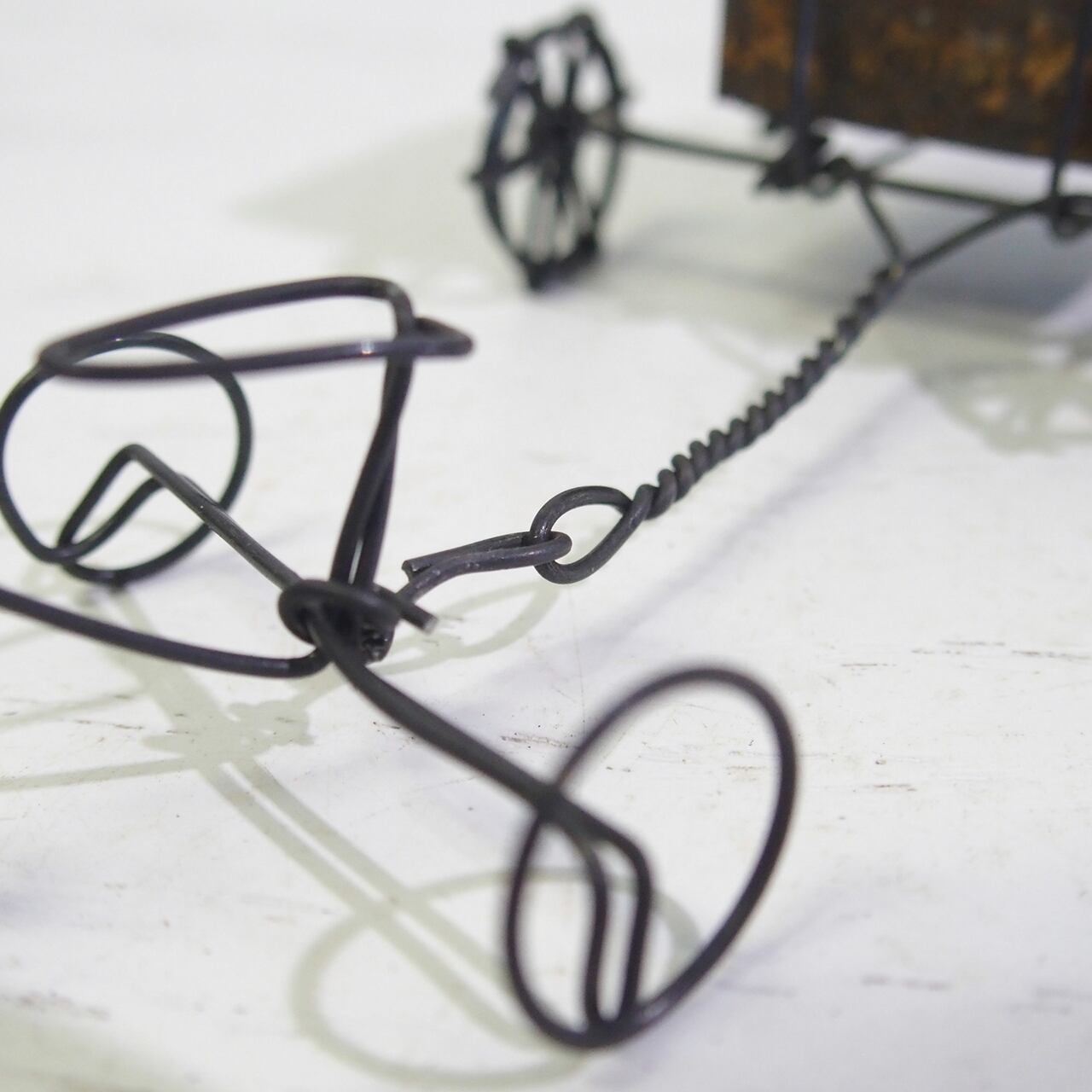 【ミニチュア・ハンドメイド・ワイヤーワーク】リアカー付きワイヤー三輪車