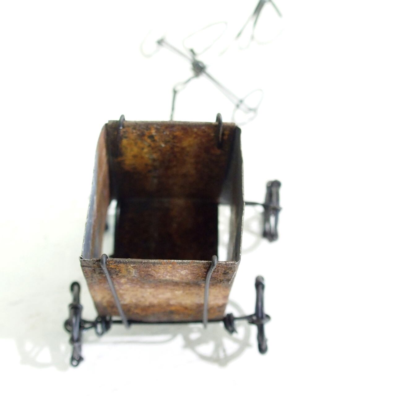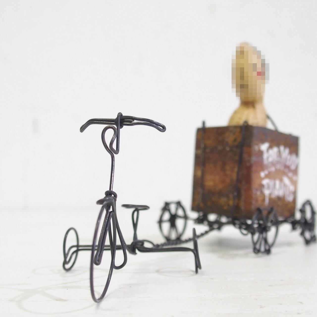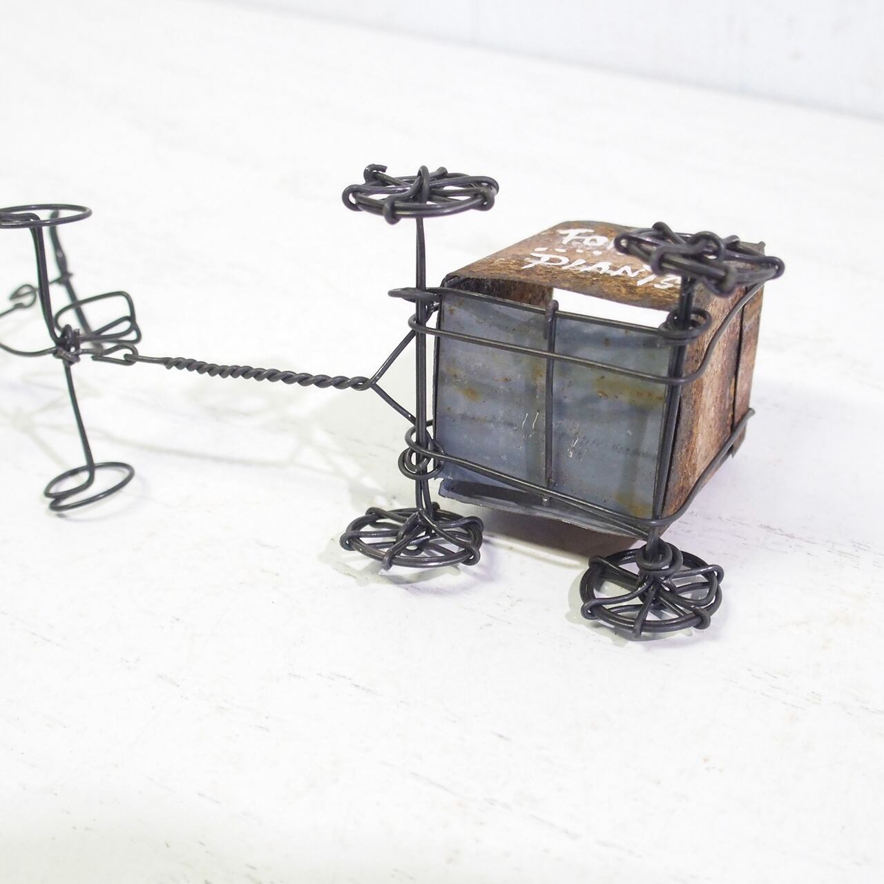 【ミニチュア・ハンドメイド・ワイヤーワーク】リアカー付きワイヤー三輪車