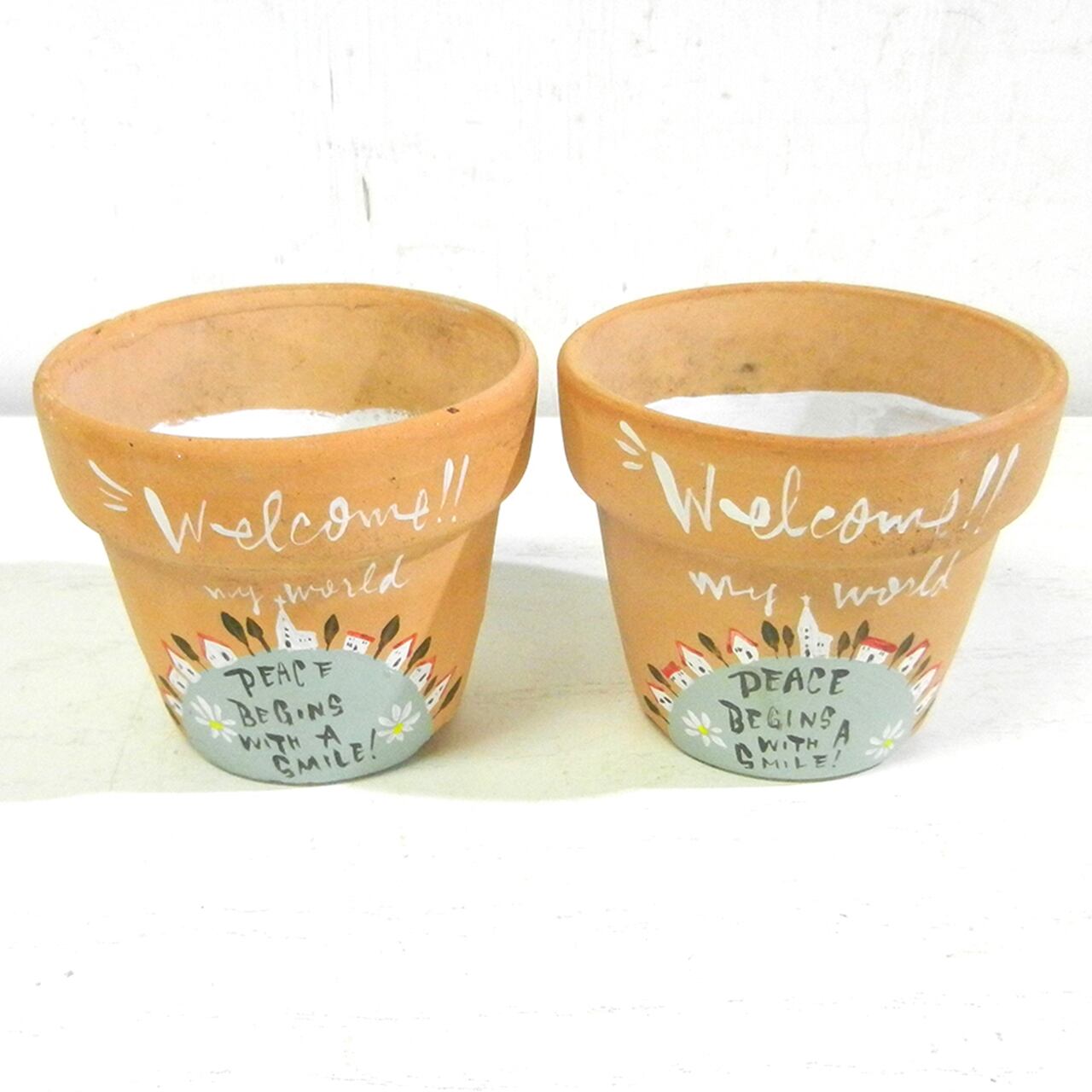 【リメイク鉢】USED2.5号丸鉢 町並みシリーズ WORLD