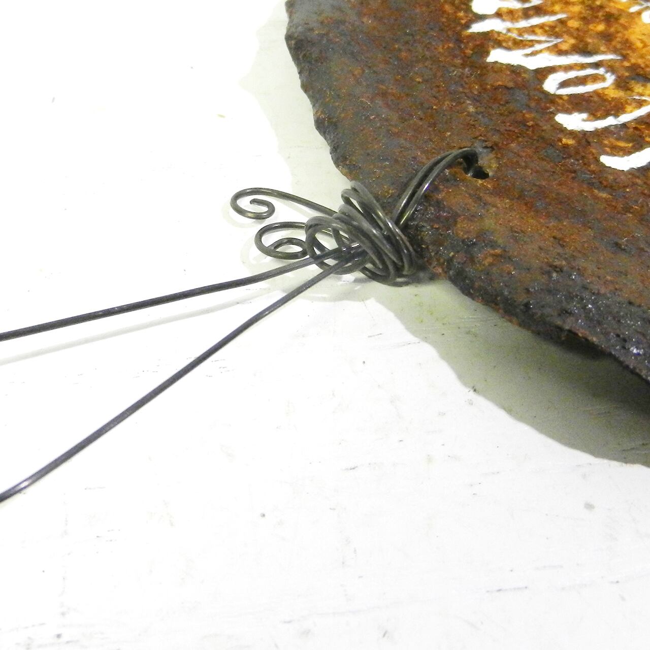 丸い缶の蓋に文字を入れたガーデンサインです!!