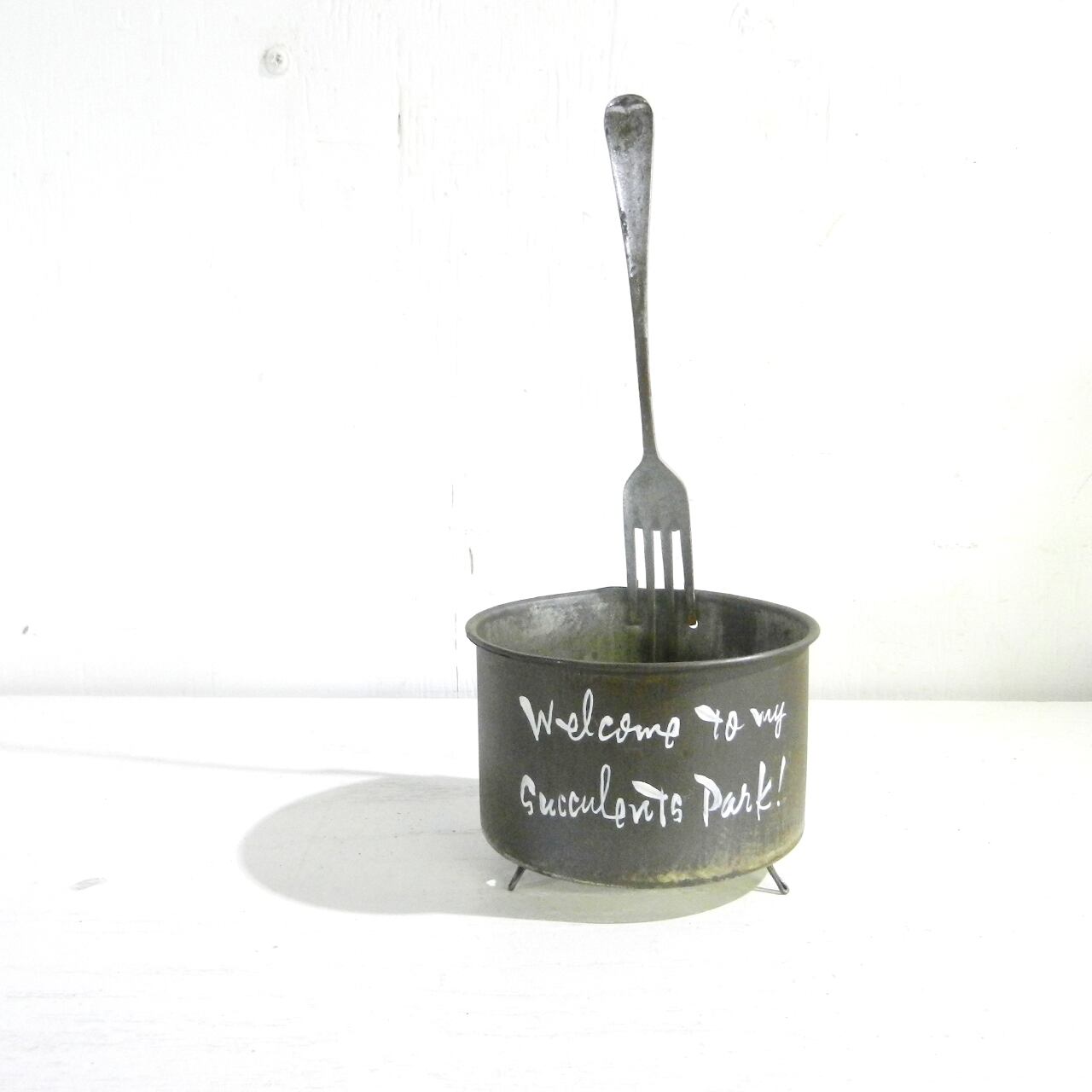 【リメイク古道具】ケーキ型プランター フォーク付き