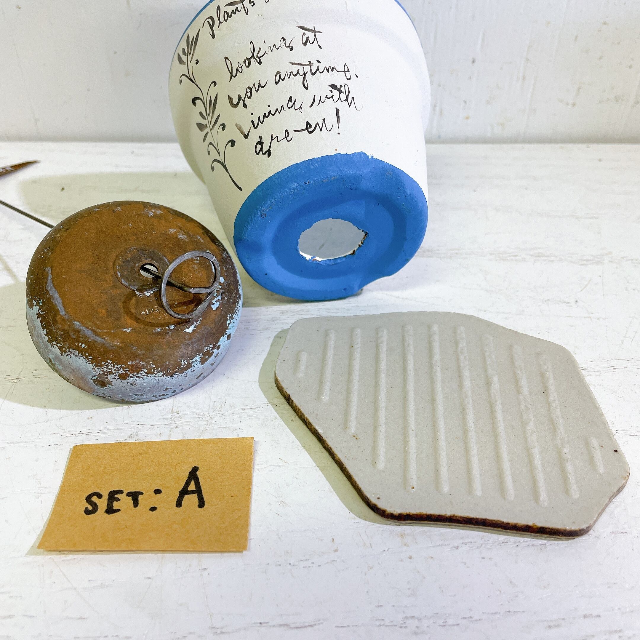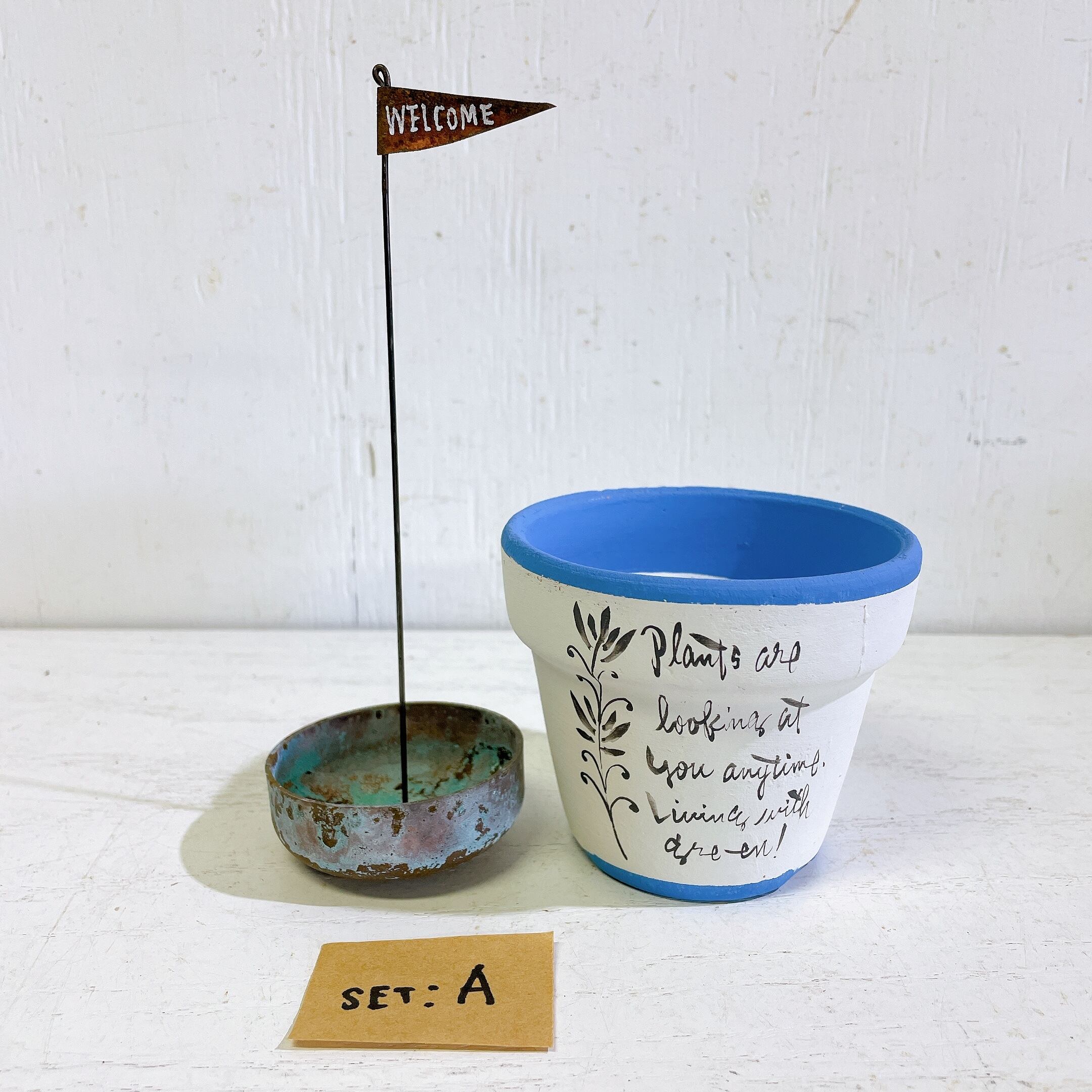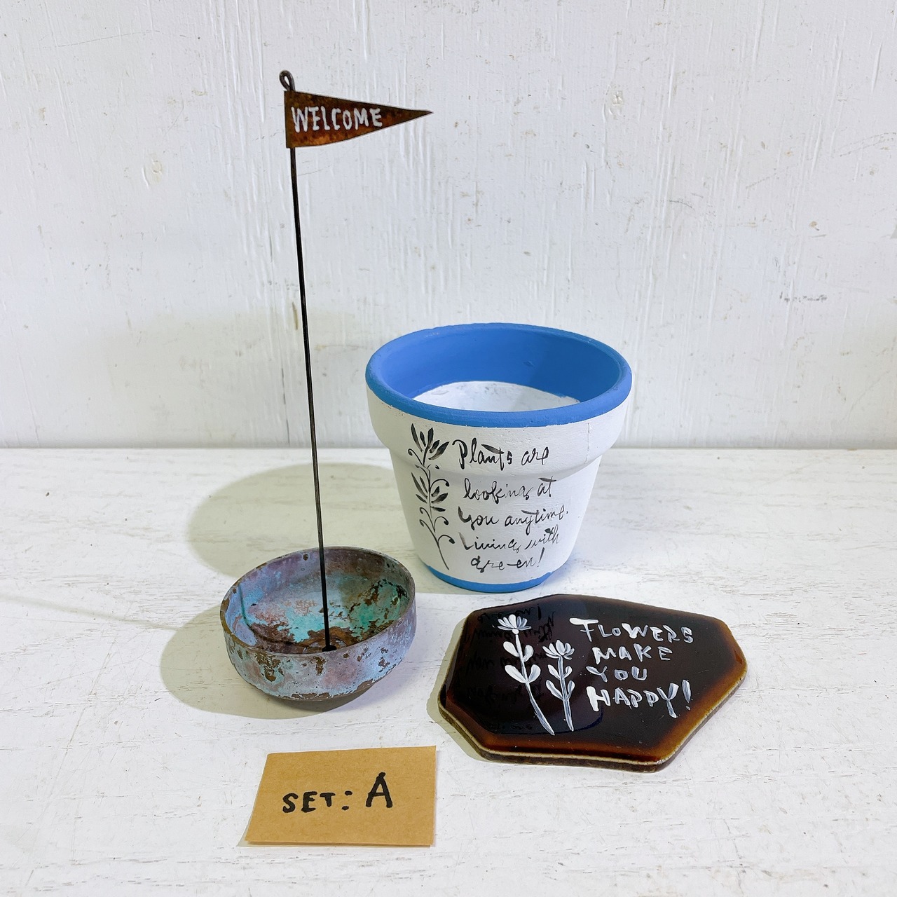 【リメイク】リメ鉢(BL)とベルプランターとタイルサイン セットA