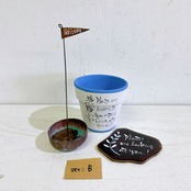 【リメイク】リメ鉢(BL)とベルプランターとタイルサイン セットB