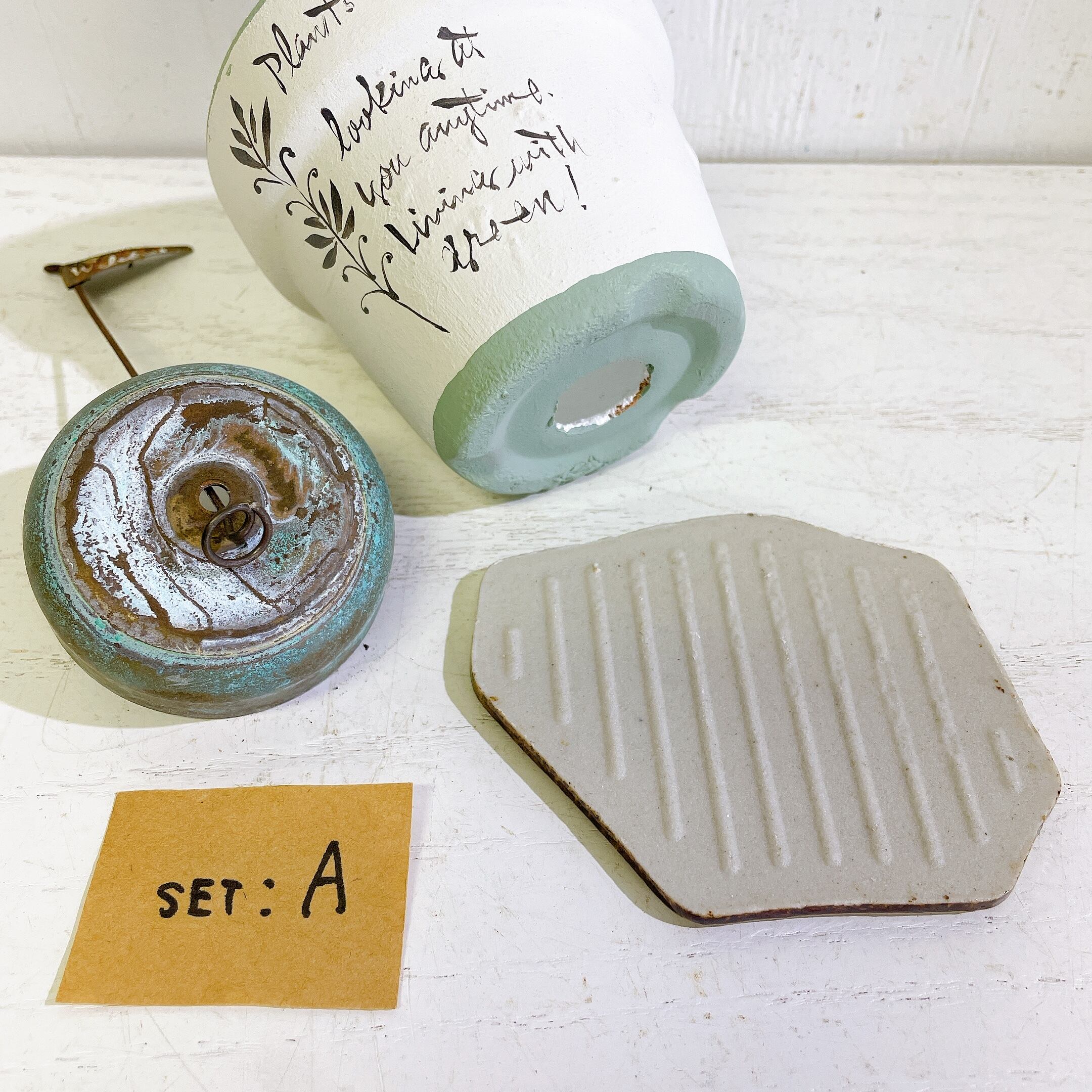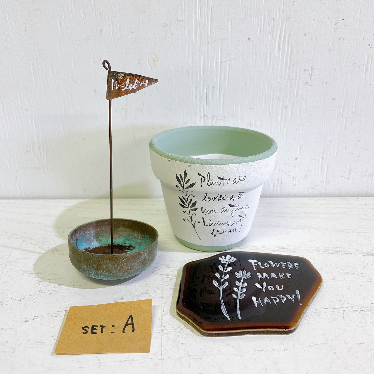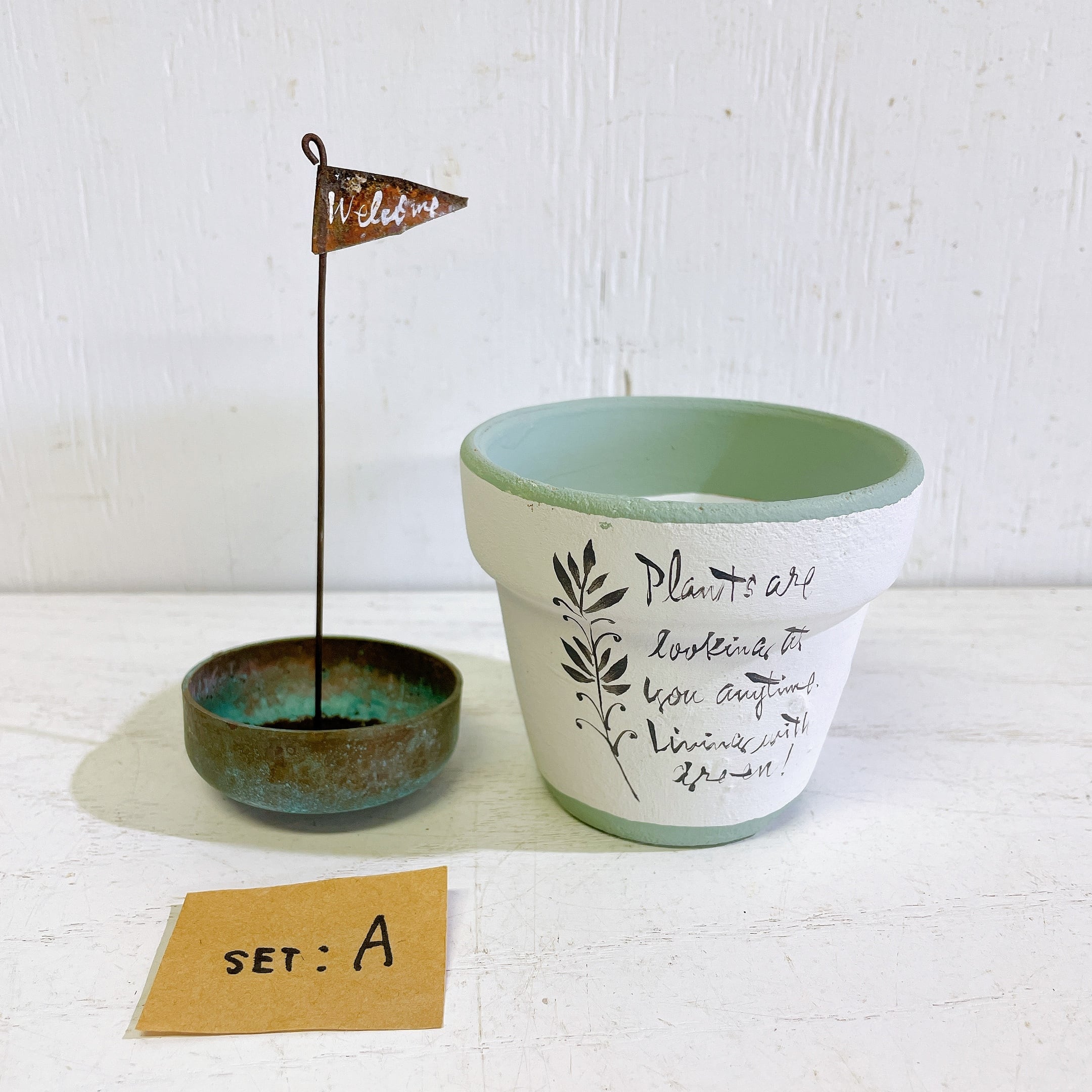 【リメイク】リメ鉢(GR)とベルプランターとタイルサイン セットA