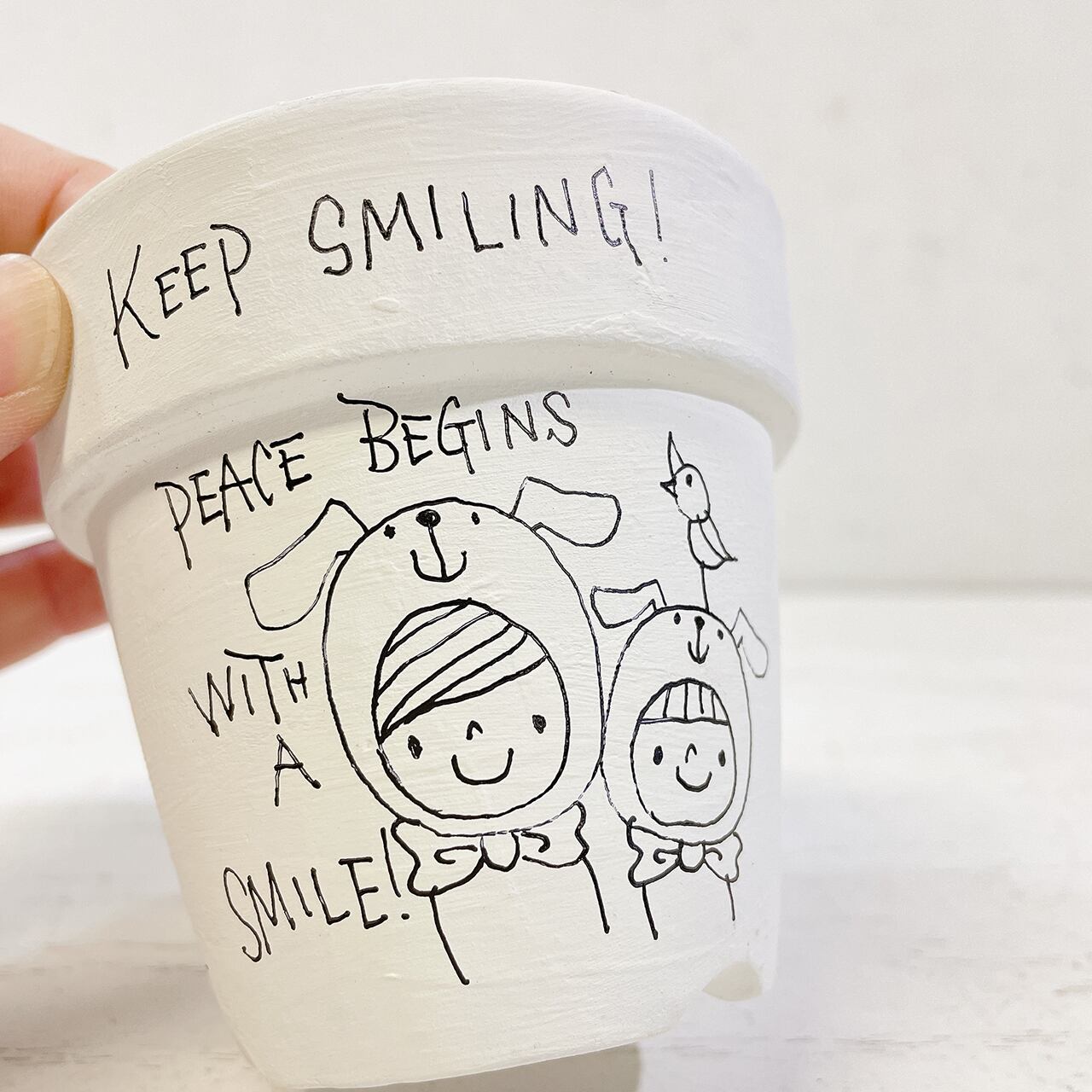 【リメイク鉢】USED2.5号丸鉢 KeepSmilingシリーズ いぬ
