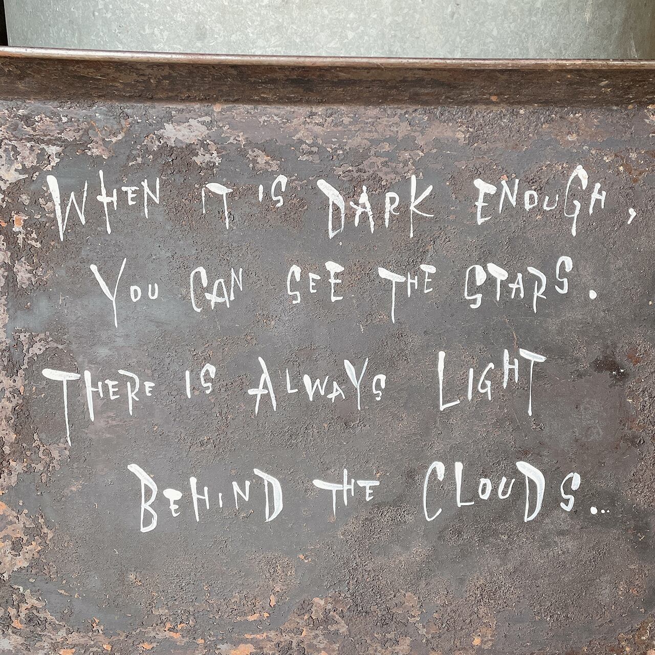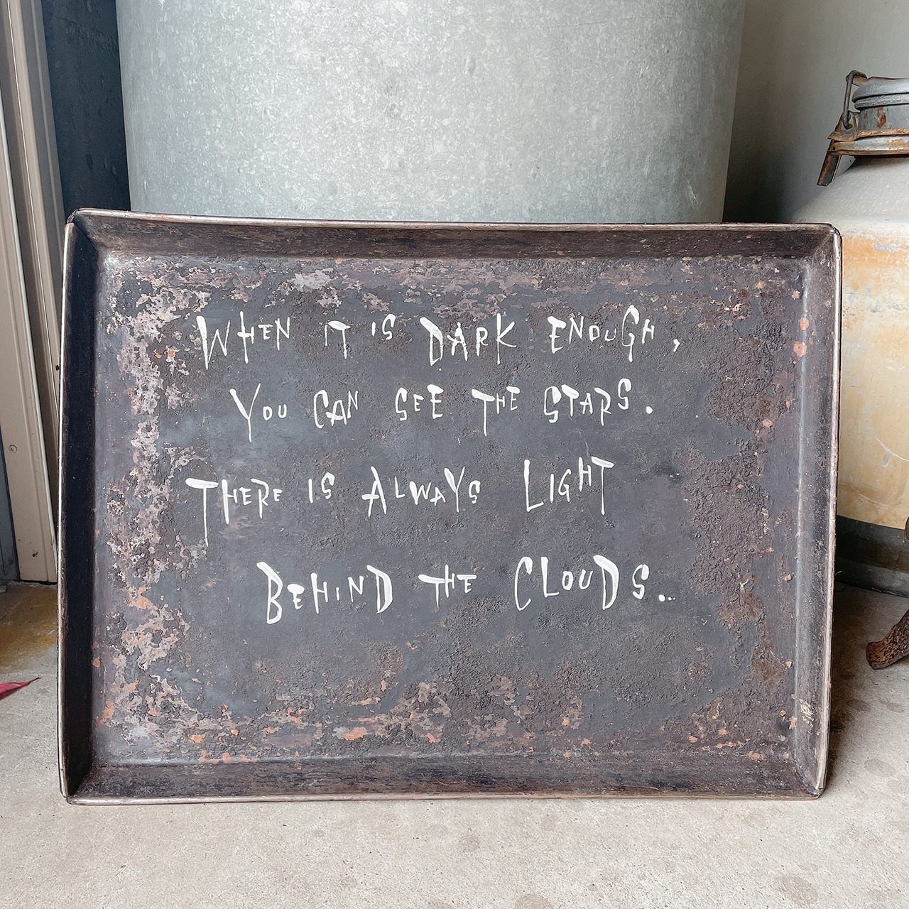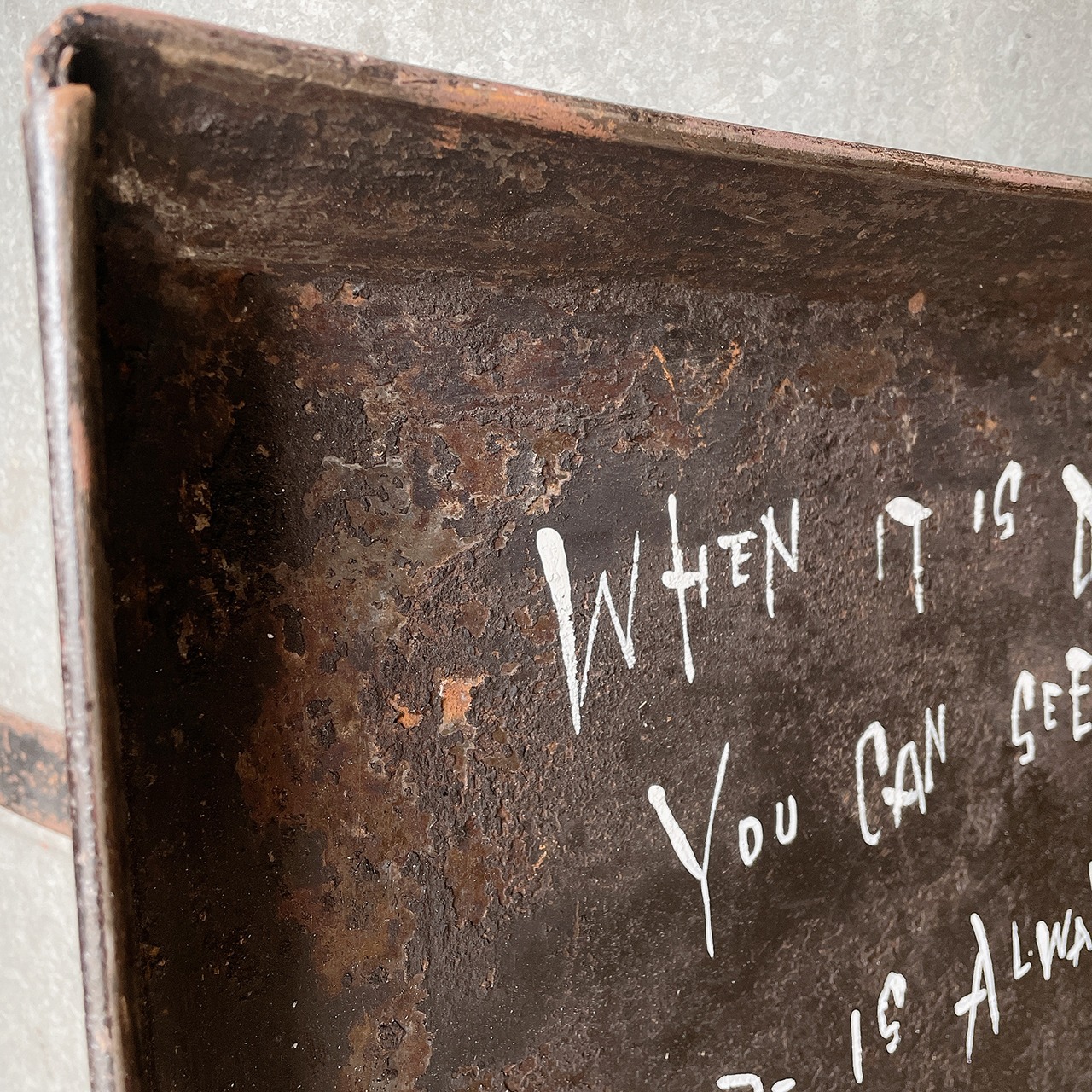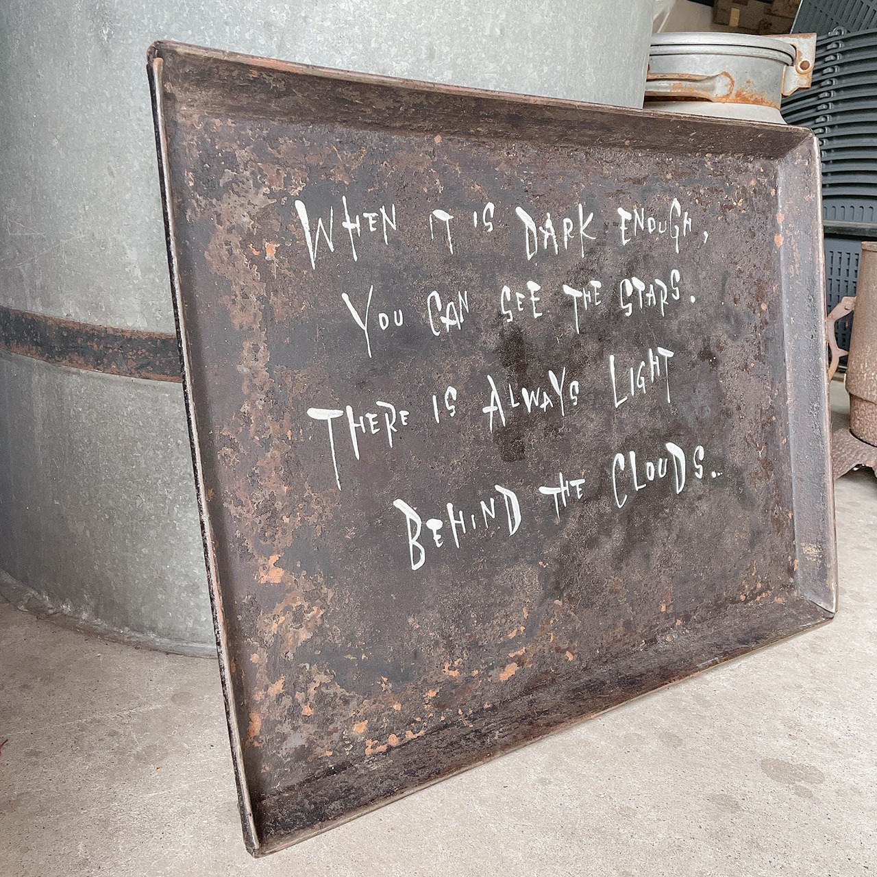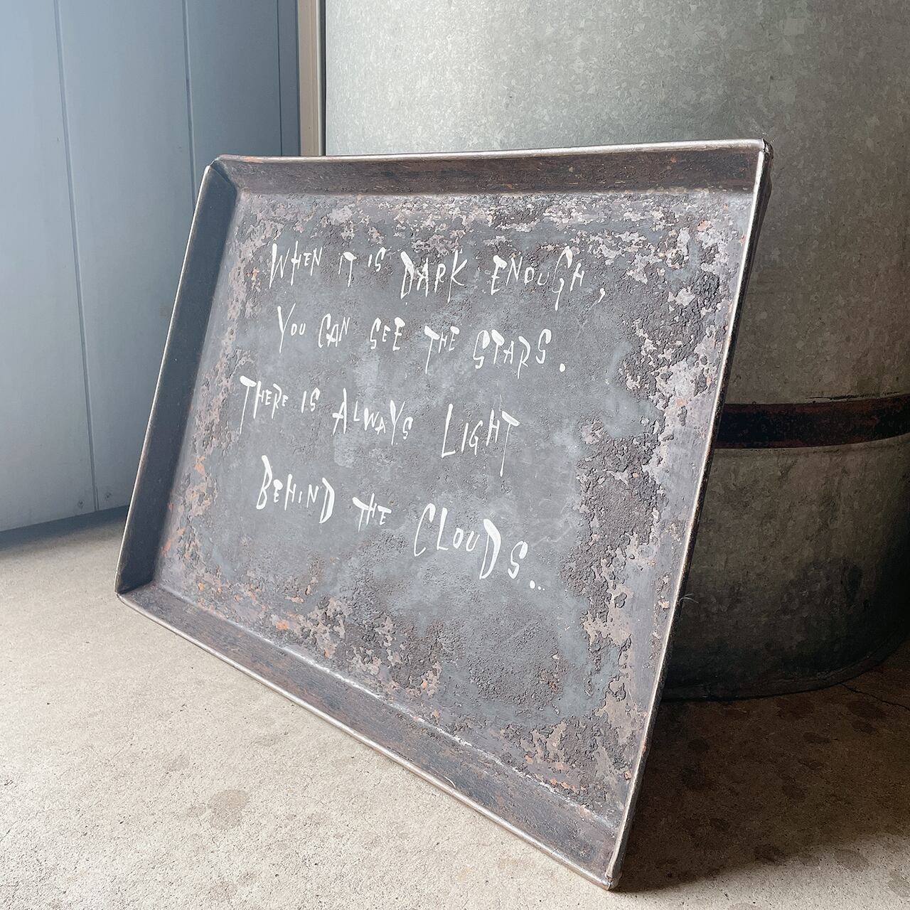 サビの出た鉄のトレーに文字を入れたガーデンサインです♪