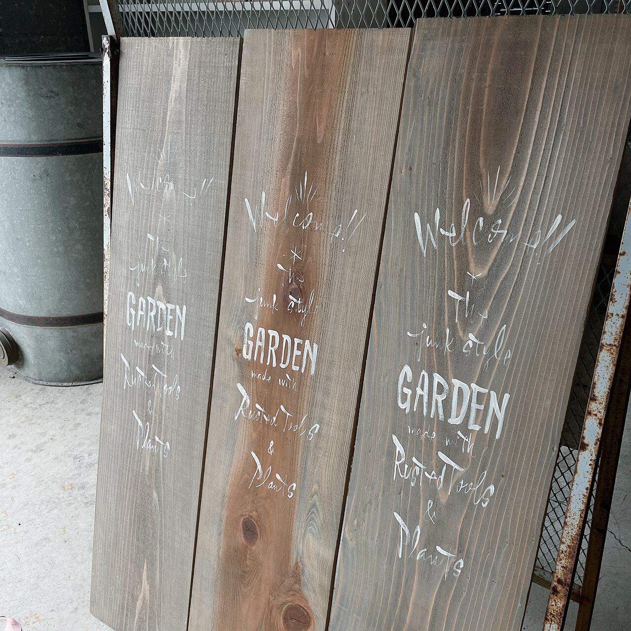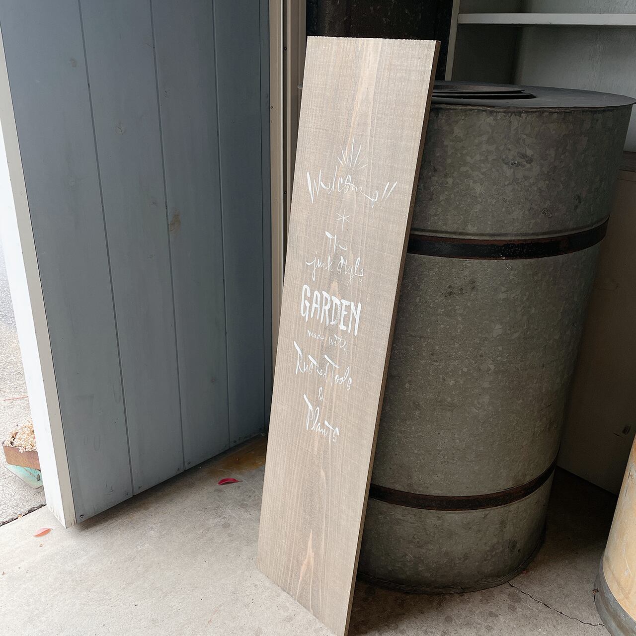 木の板に文字を入れたシンプルなWelcomeサインです♪