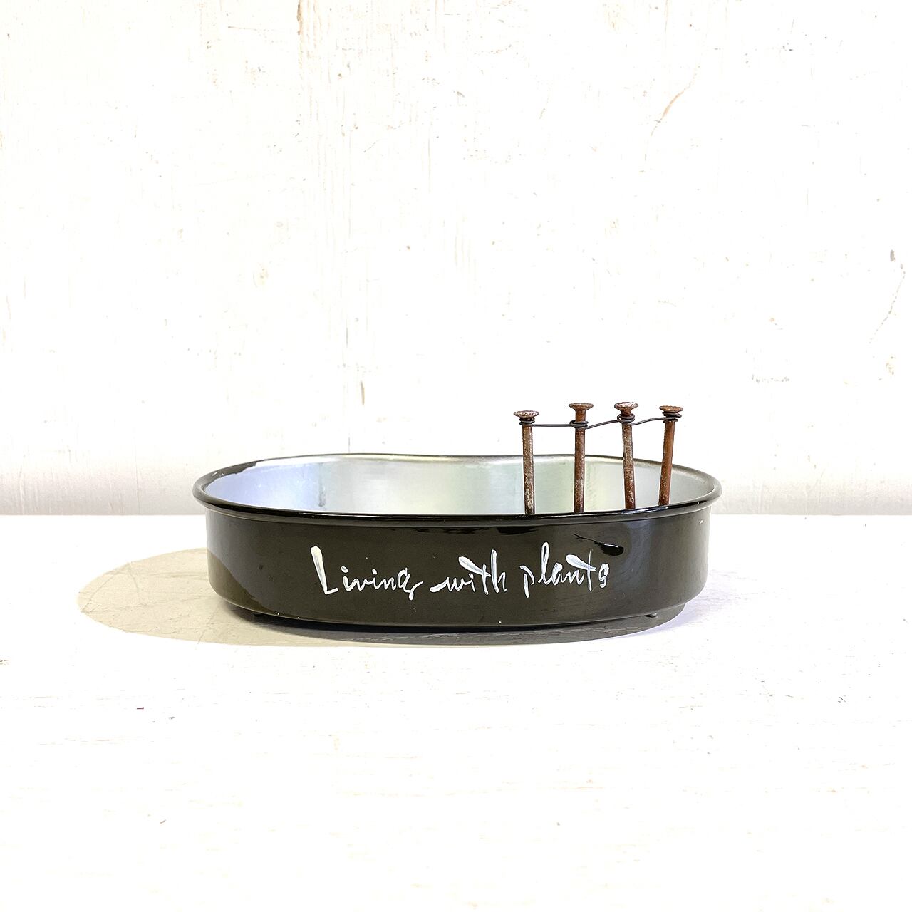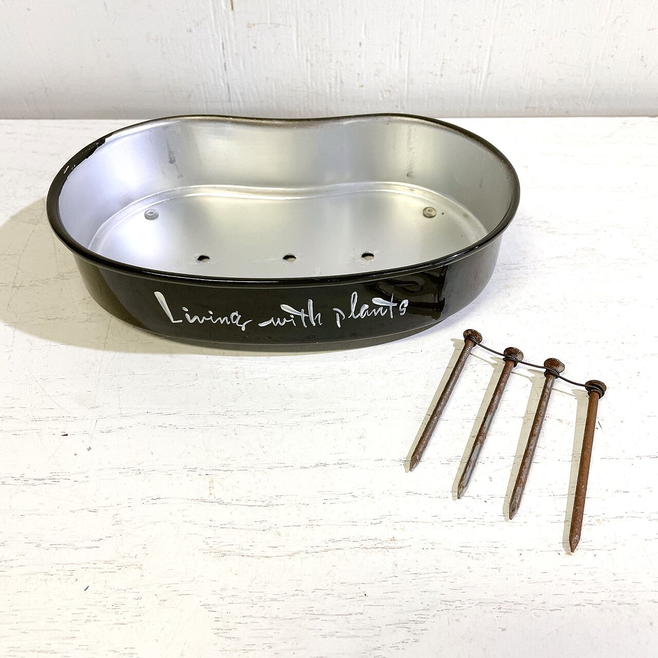 【リメイク古道具】ハンゴウ蓋のプランター クギフェンス付き