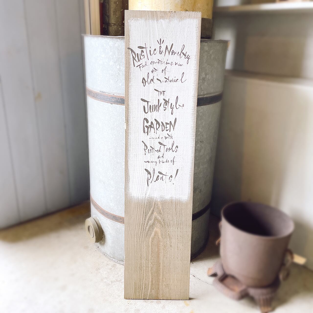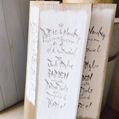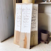 木の板のベースを少し白く塗って文字を入れた