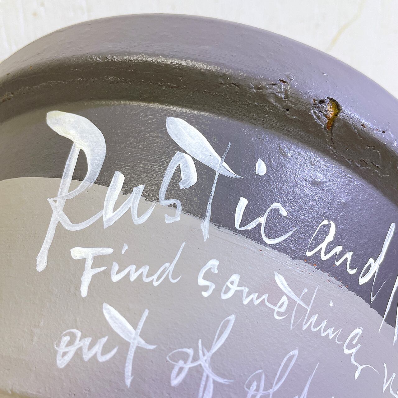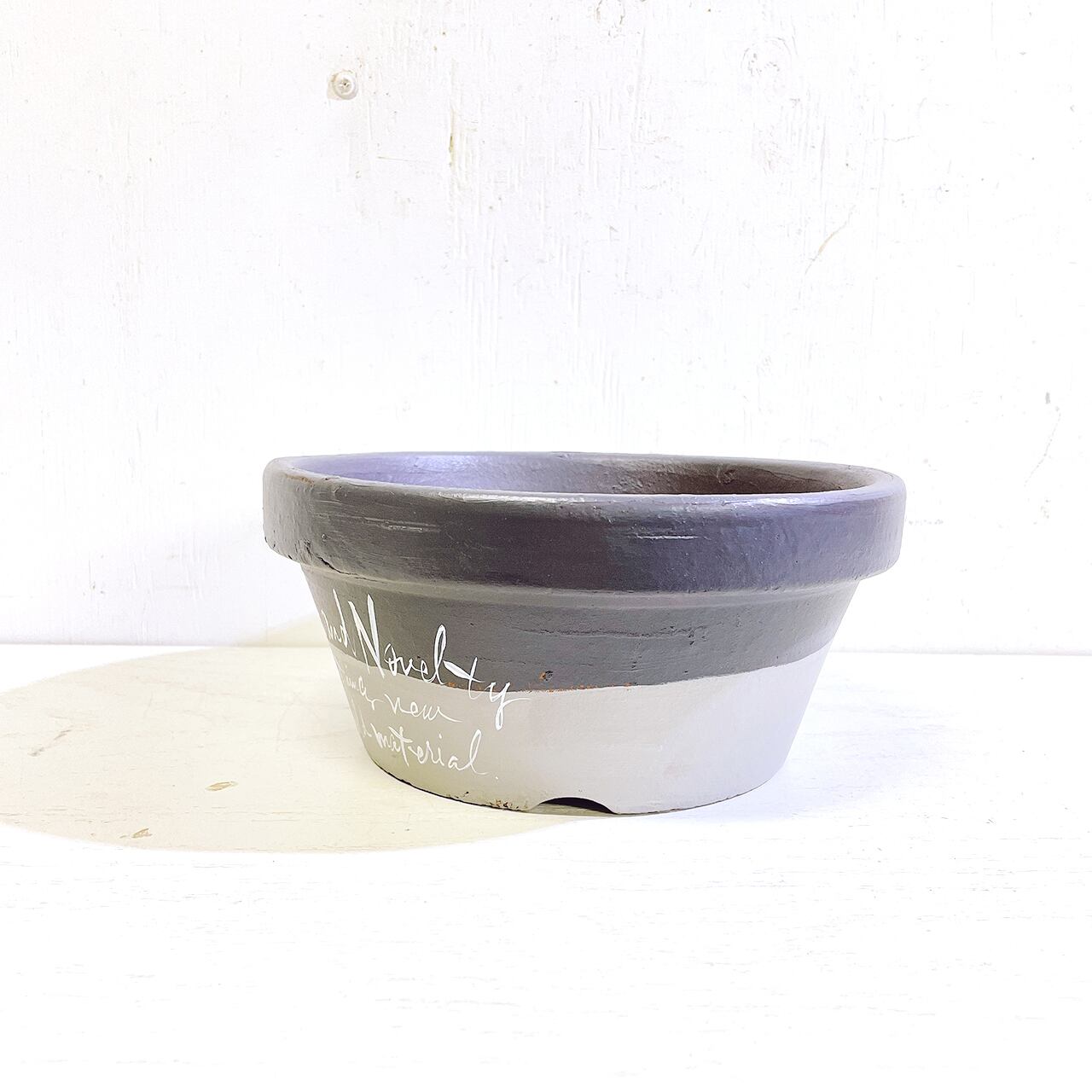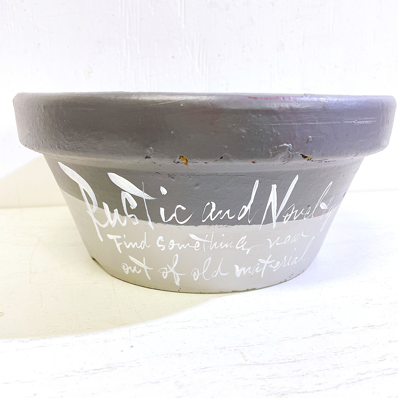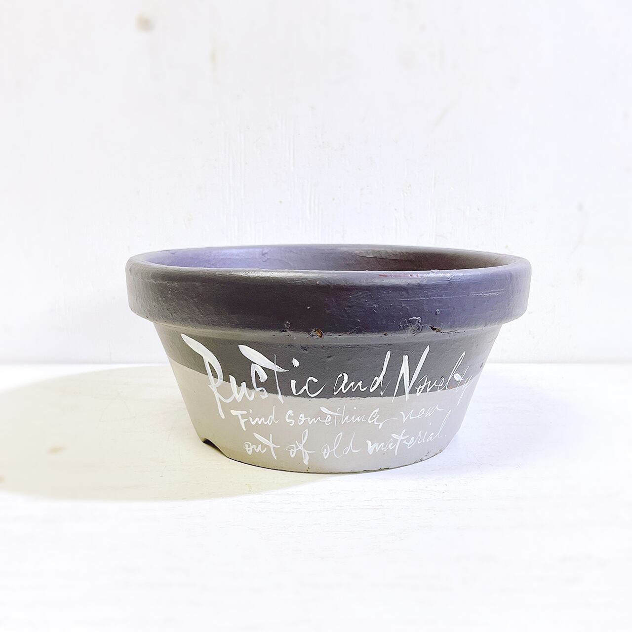 デッドストックの素焼き鉢に文字を入れたシンプルでかっこいいリメ鉢です♪