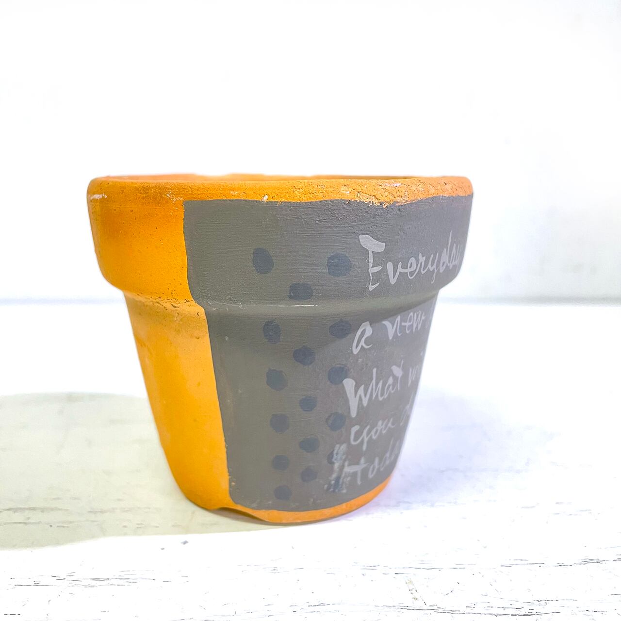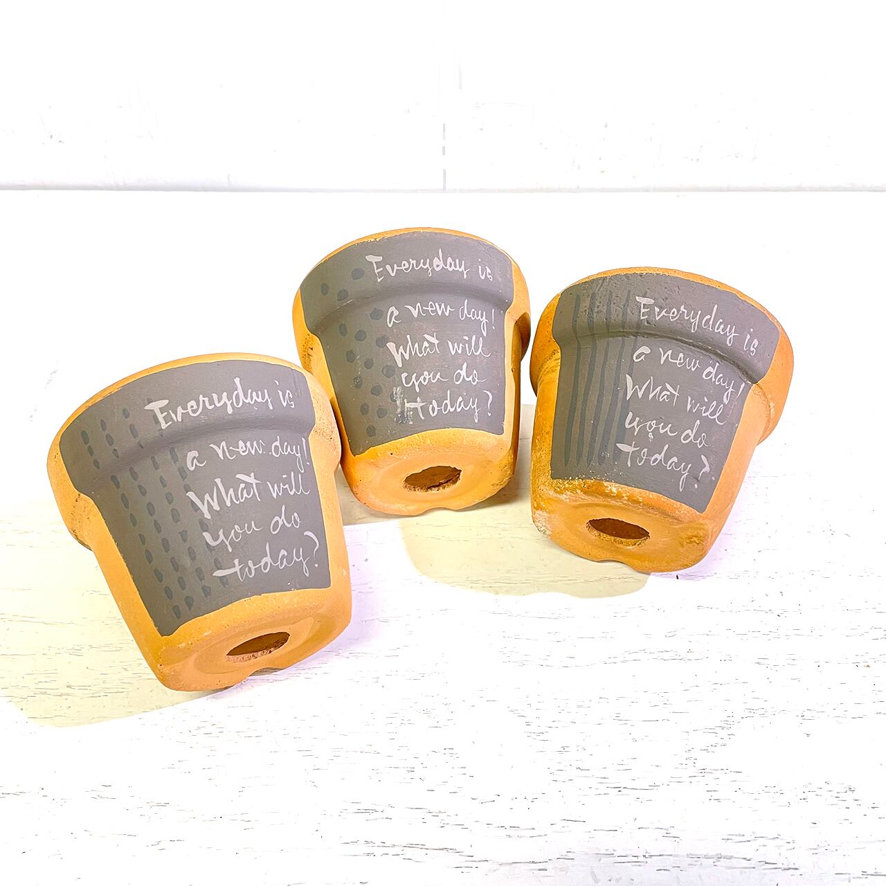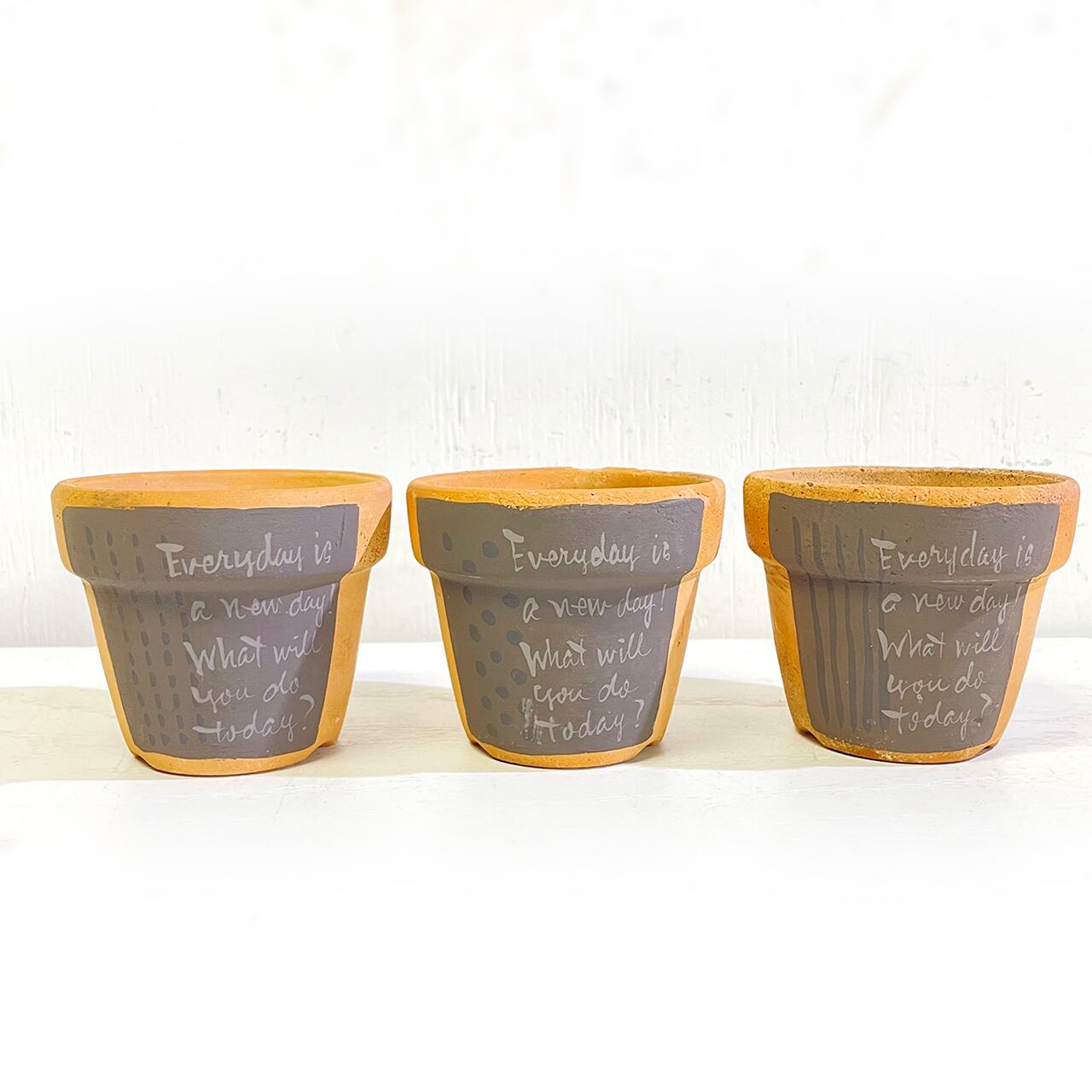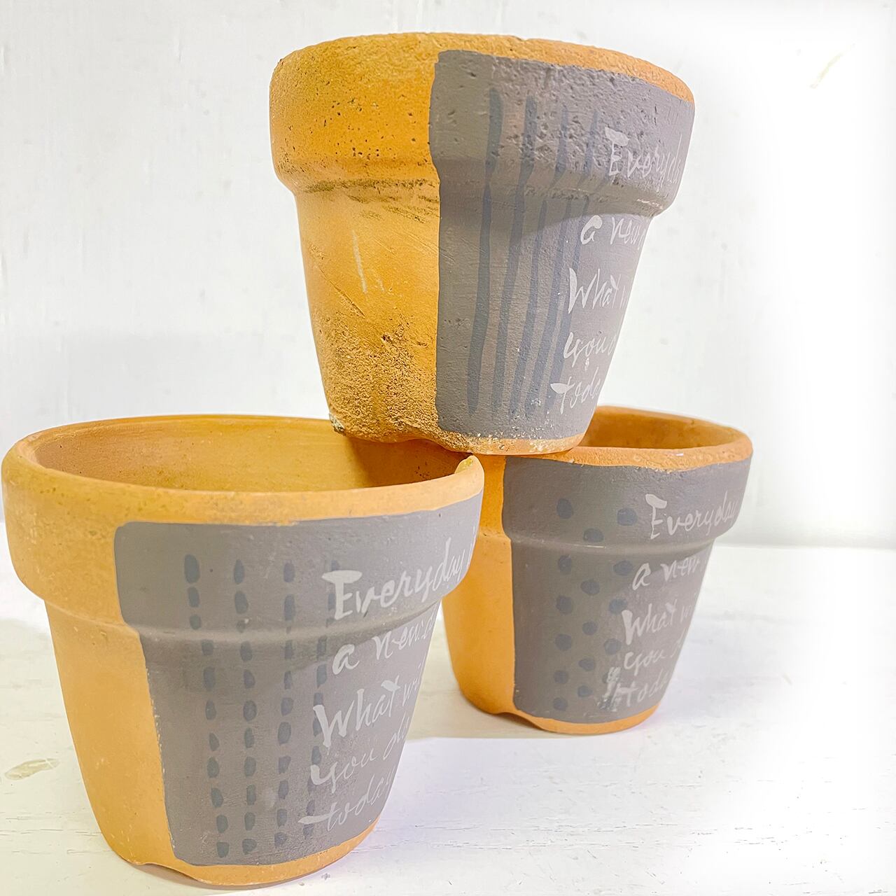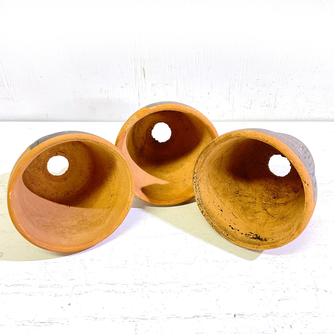 【リメイク鉢】USED2.5号丸鉢 ドットライン・ドット・ストライプ3点セット BR