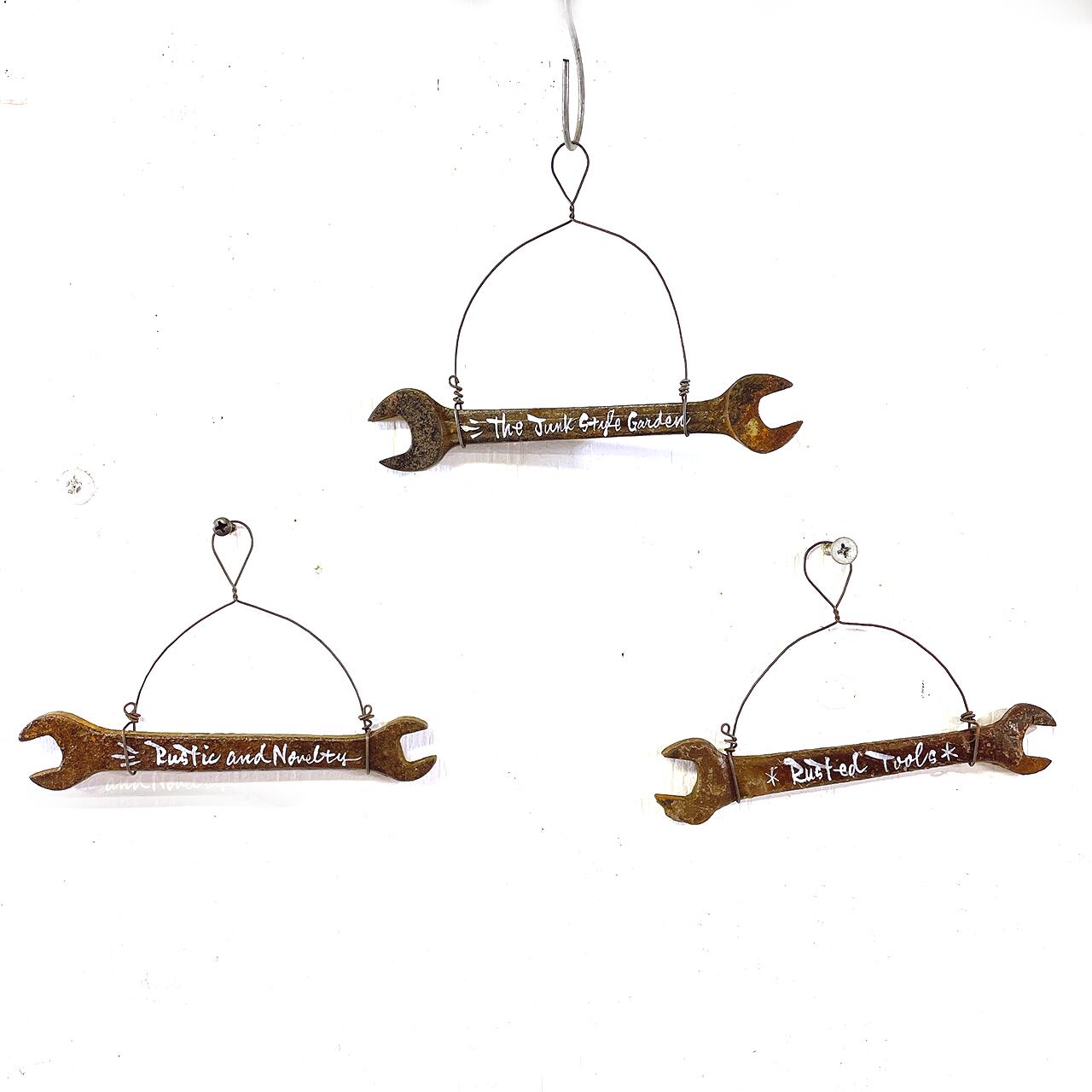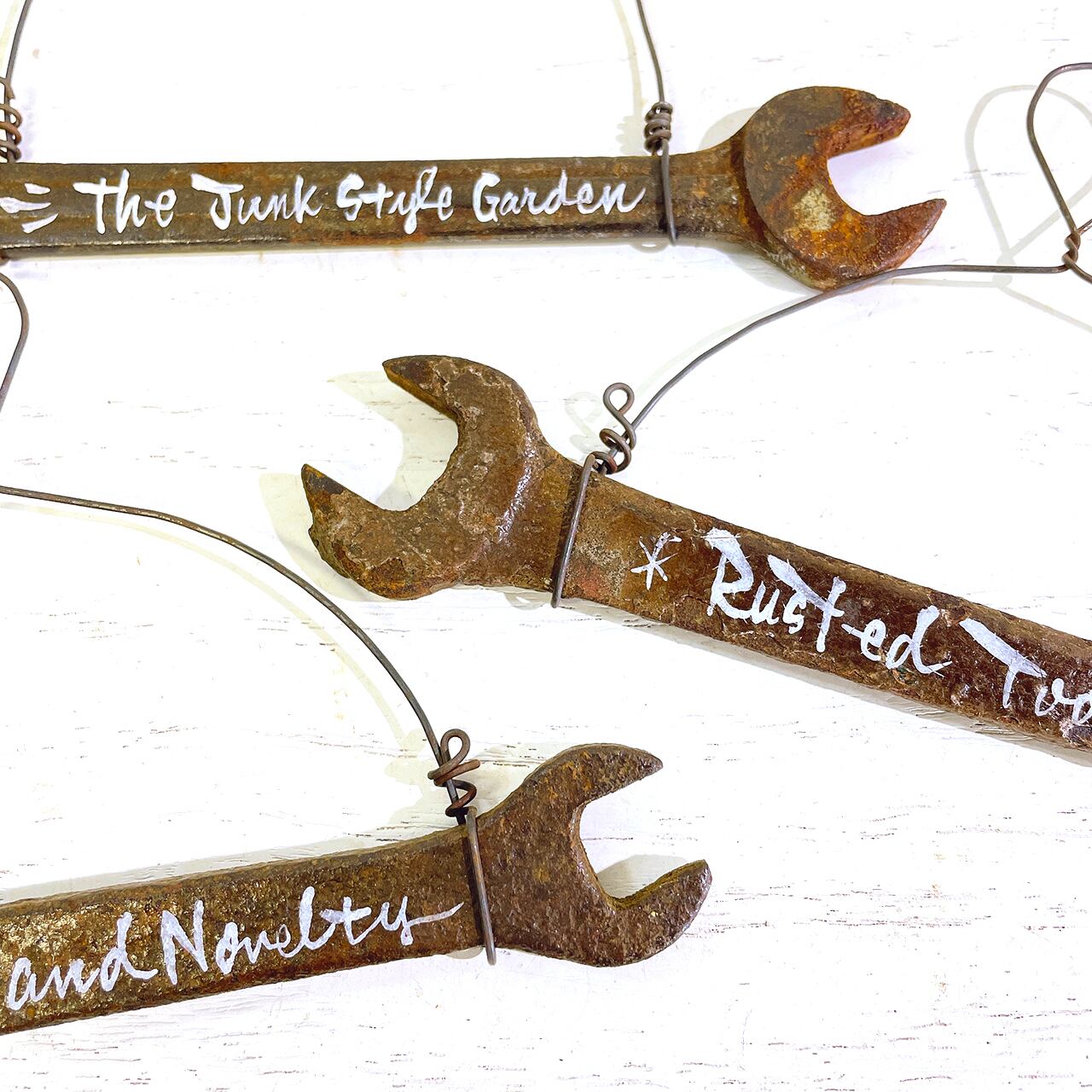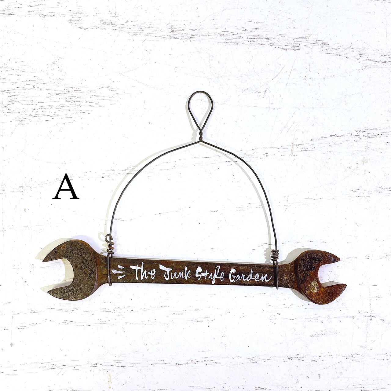 サビサビの古いスパナに文字を入れたガーデンサインです♪
