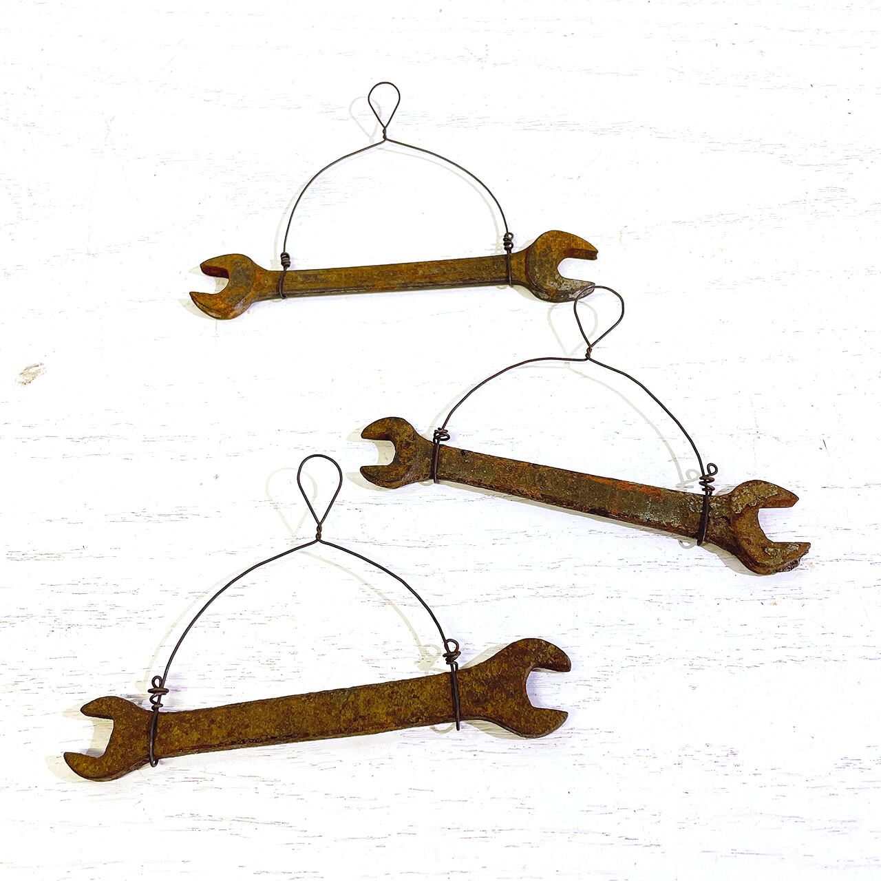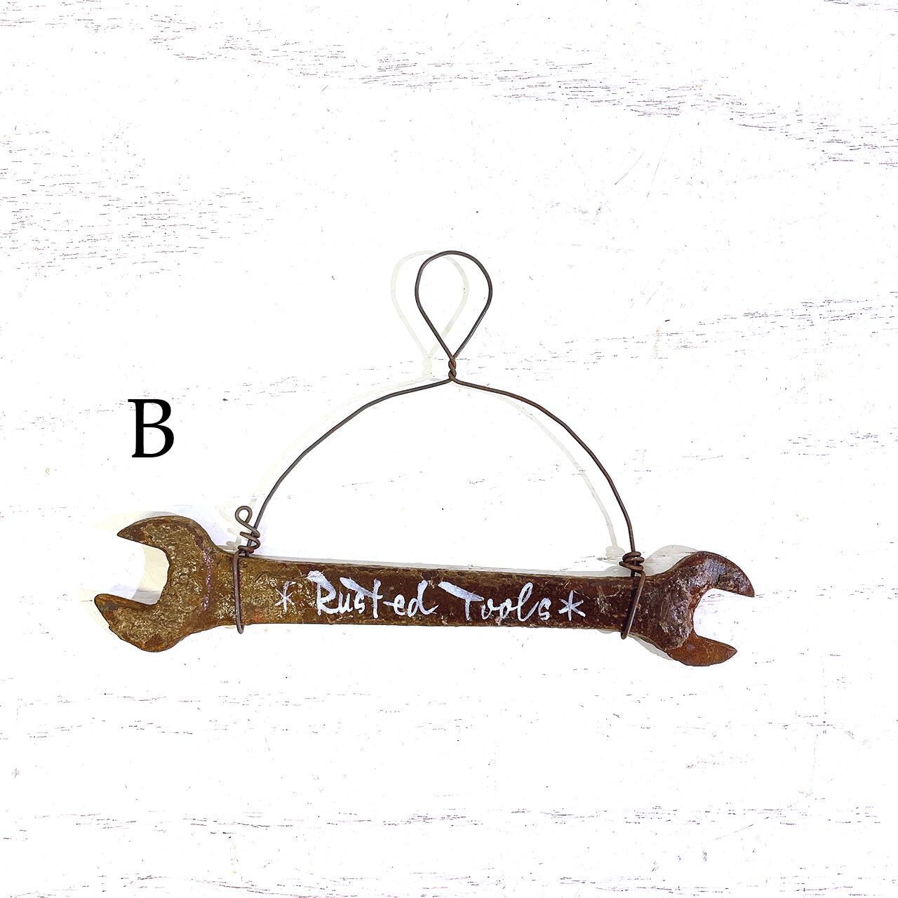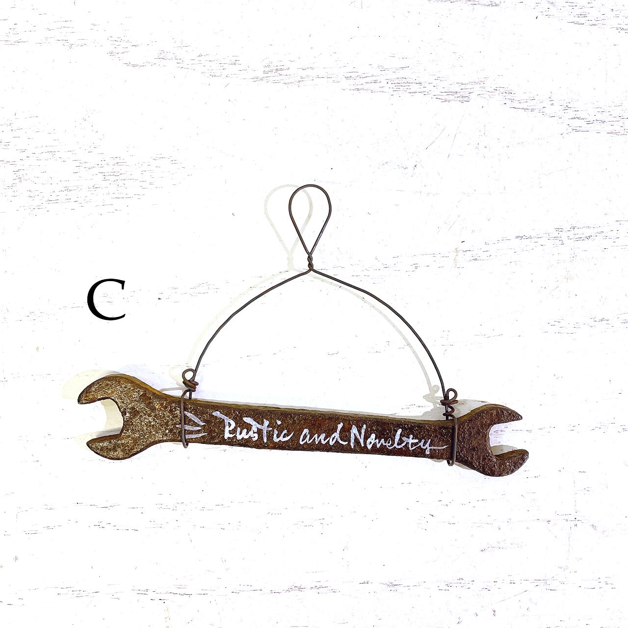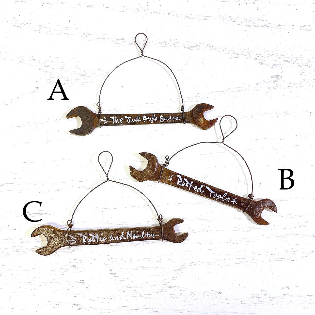 サビサビの古いスパナに文字を入れたガーデンサインです♪