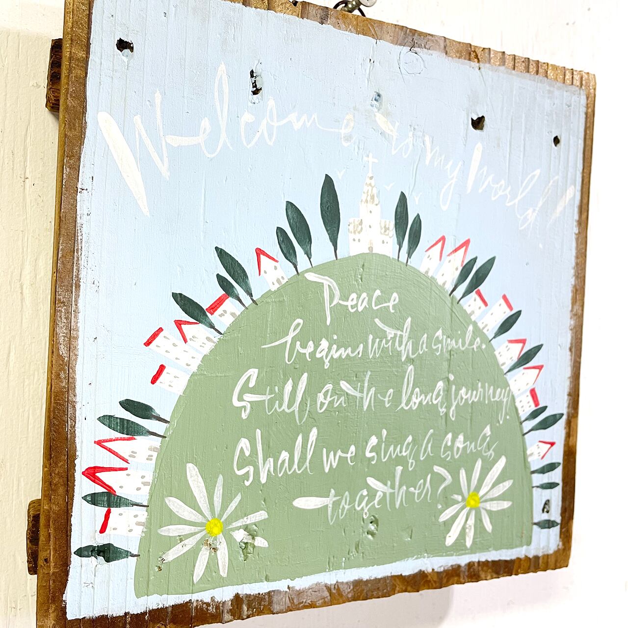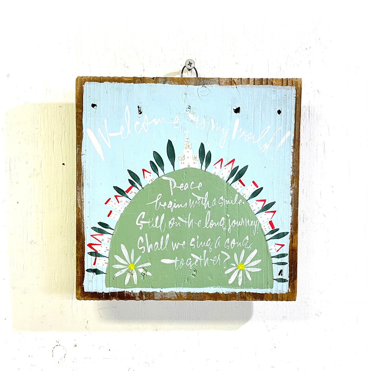 木製の台(作陶台)にペイントしたイラストパネルです♪