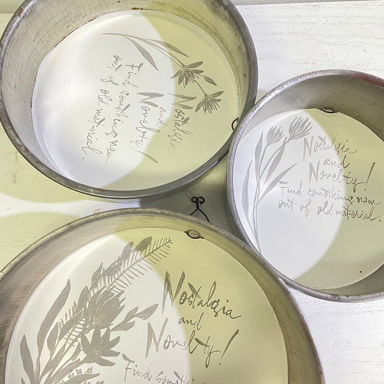 ケーキの型にイラスト文字を入れたカッコ可愛いガーデンサインです♪