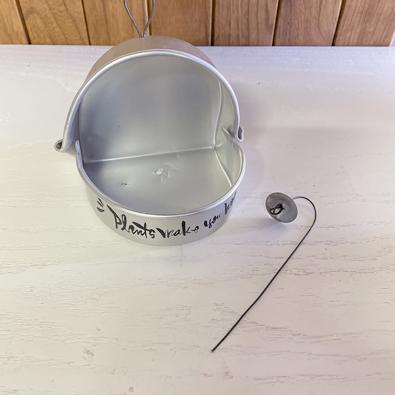 【リメイク古道具】ハンゴウ中蓋のプランター 外灯ピック付き