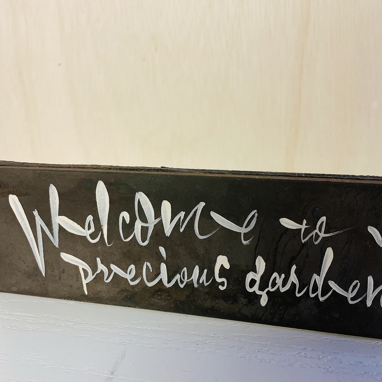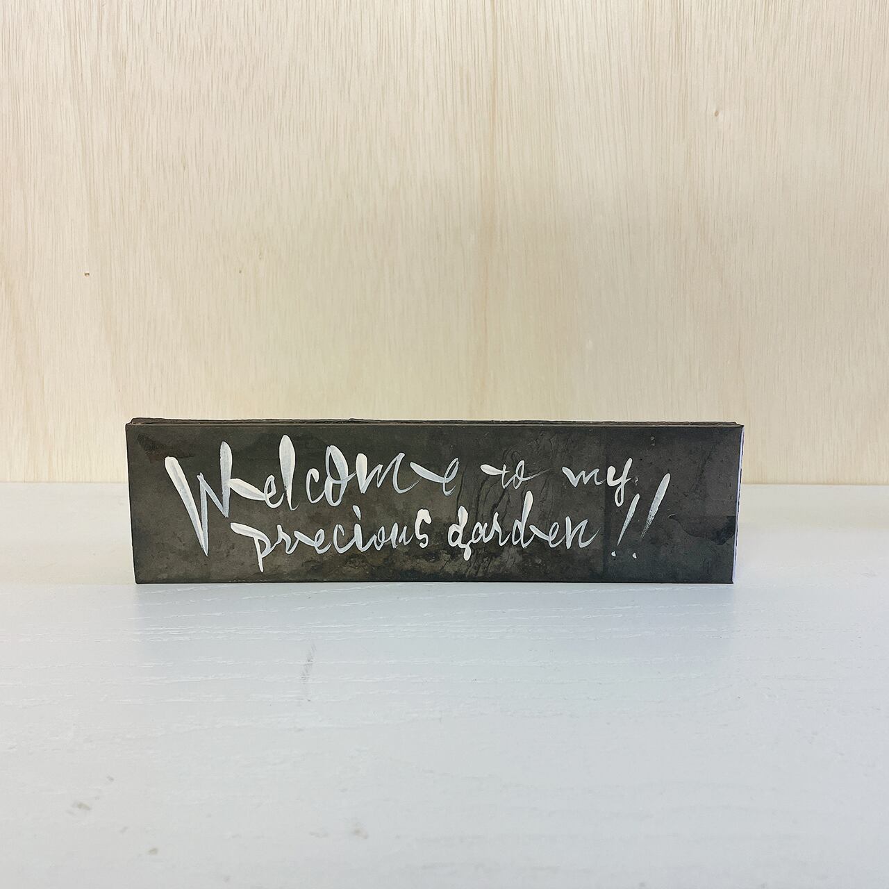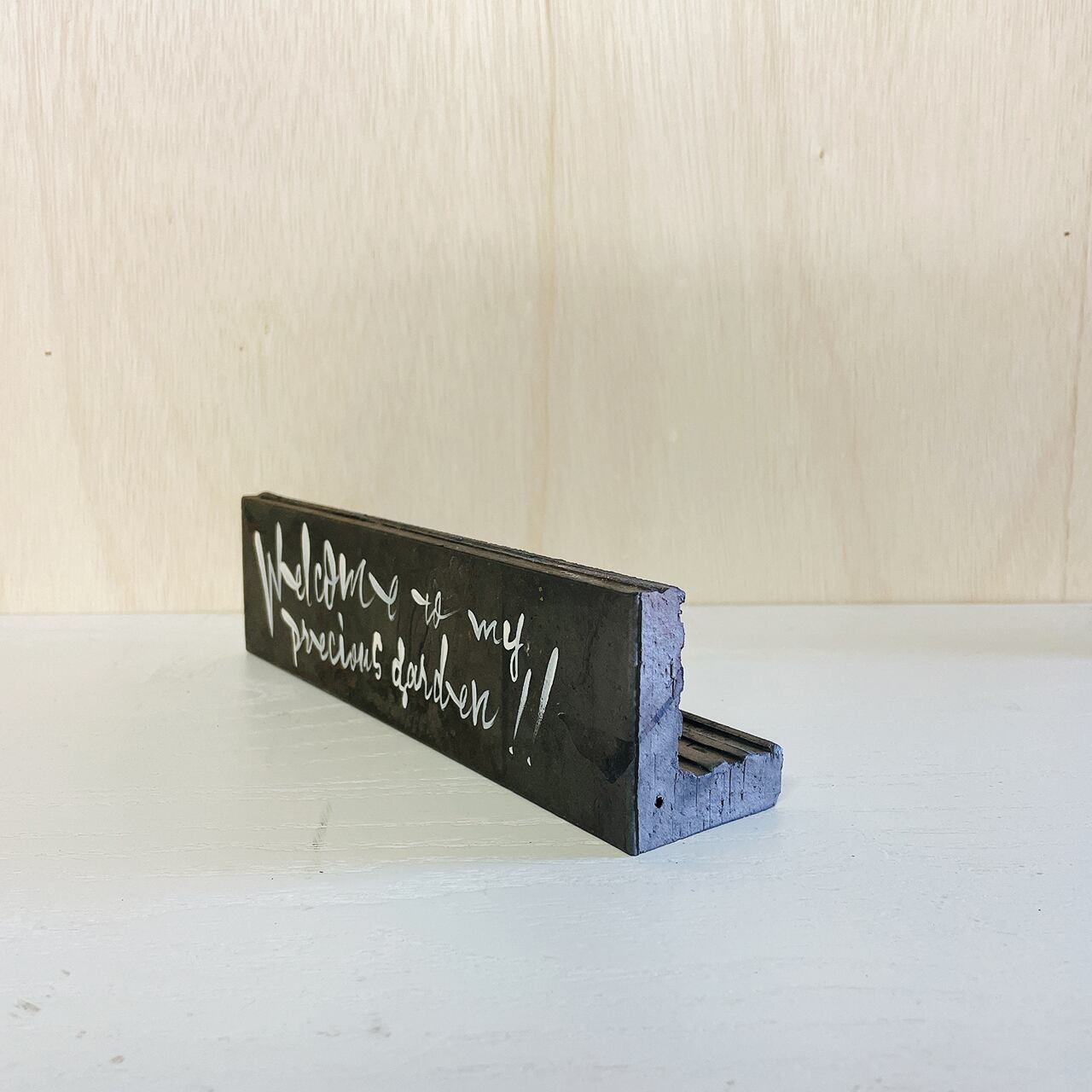 デッドストックのブリックに文字を入れたシンプルなサインです♪