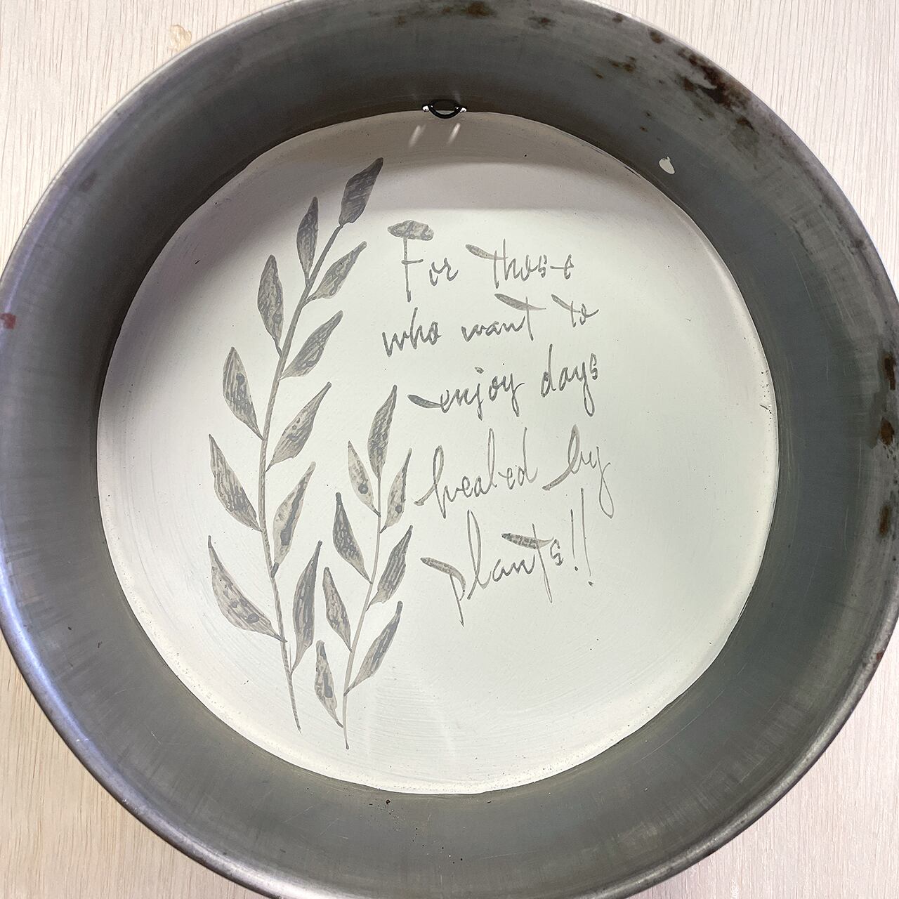 ケーキの型にイラスト文字を入れたカッコ可愛いガーデンサインです♪