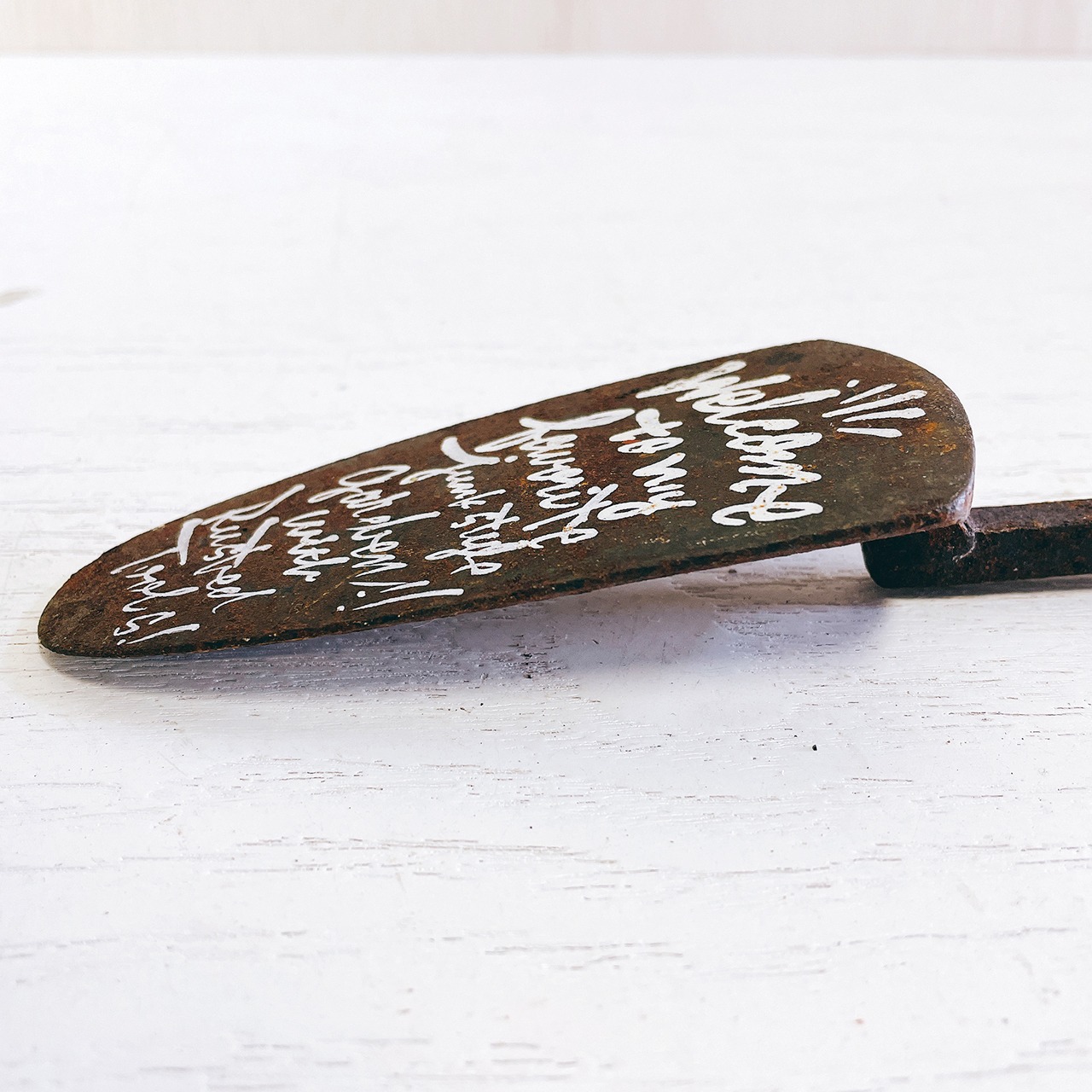 鏝火熨斗(コテヒノシ)に文字を入れたサインです♪