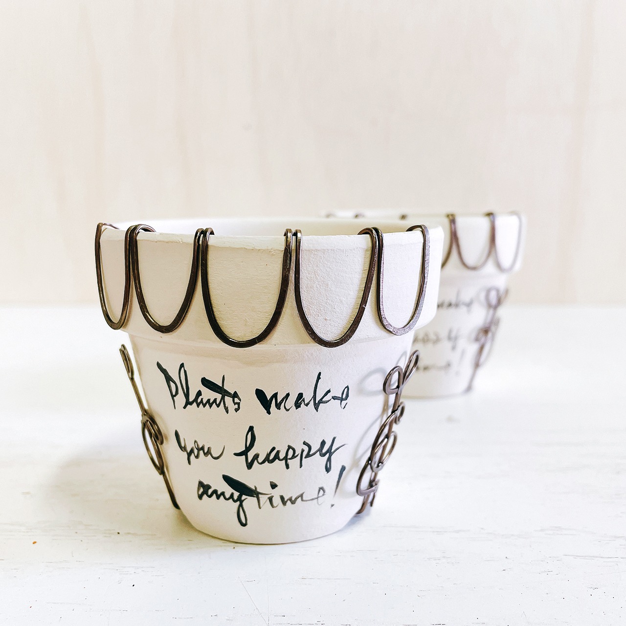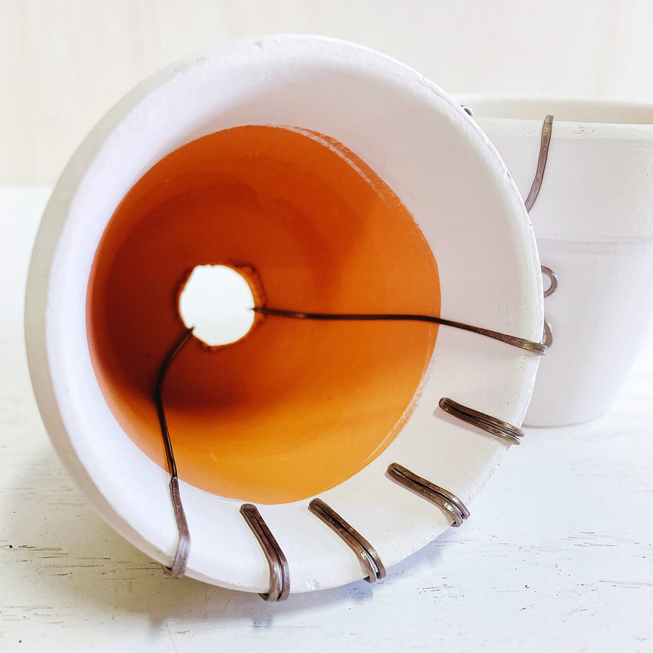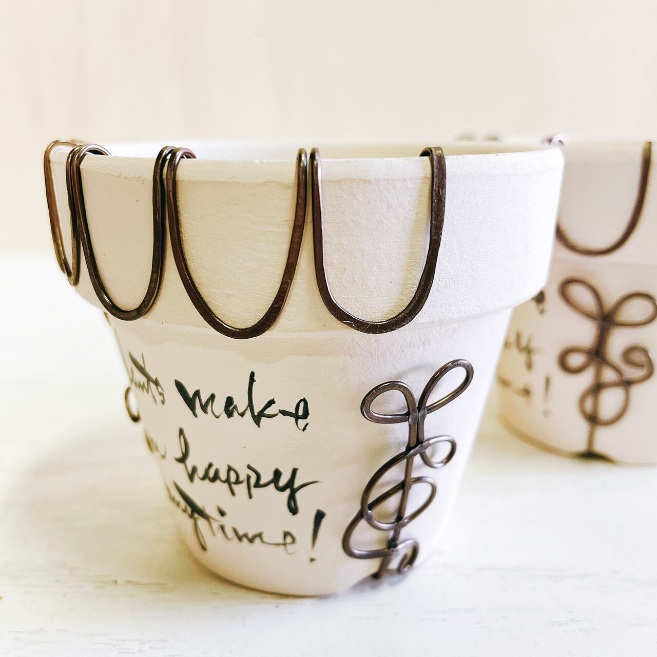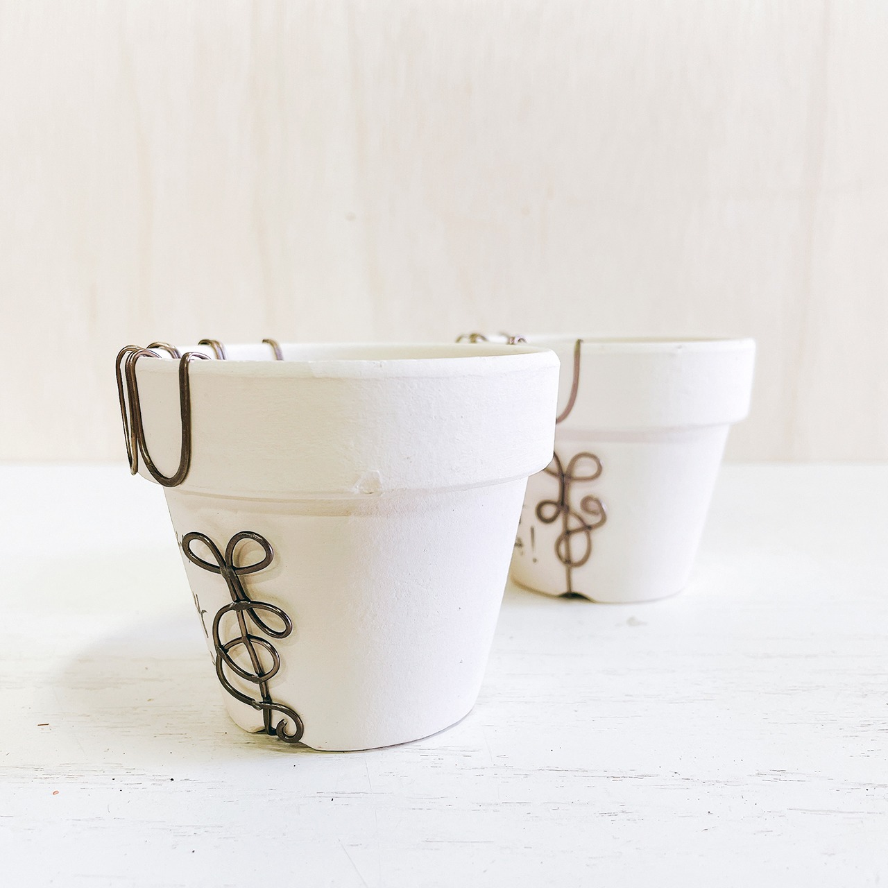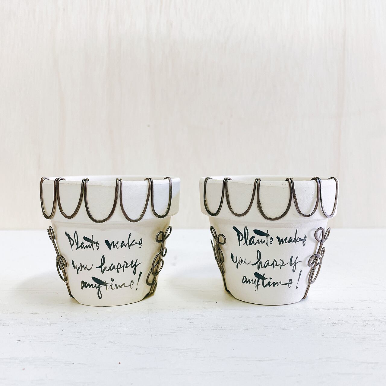 2.5号の丸鉢にワイヤーでアレンジを施し、