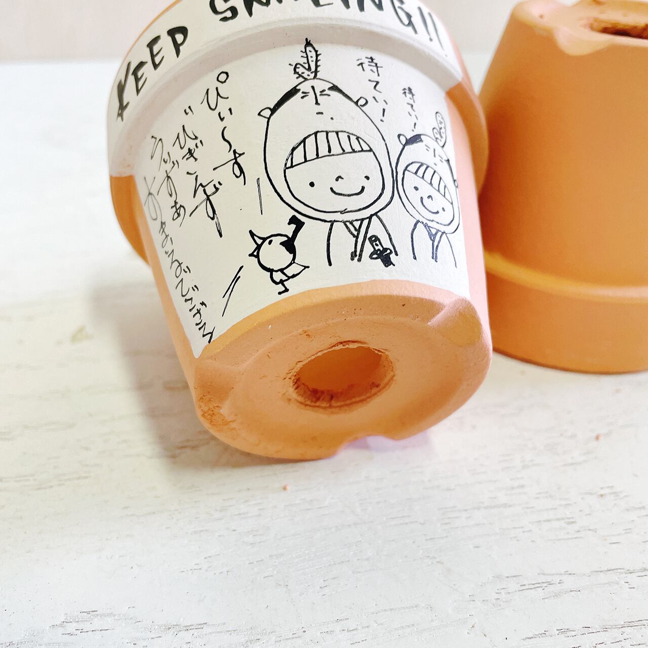 2.5号の丸鉢にドローイングしたリメ鉢です♪