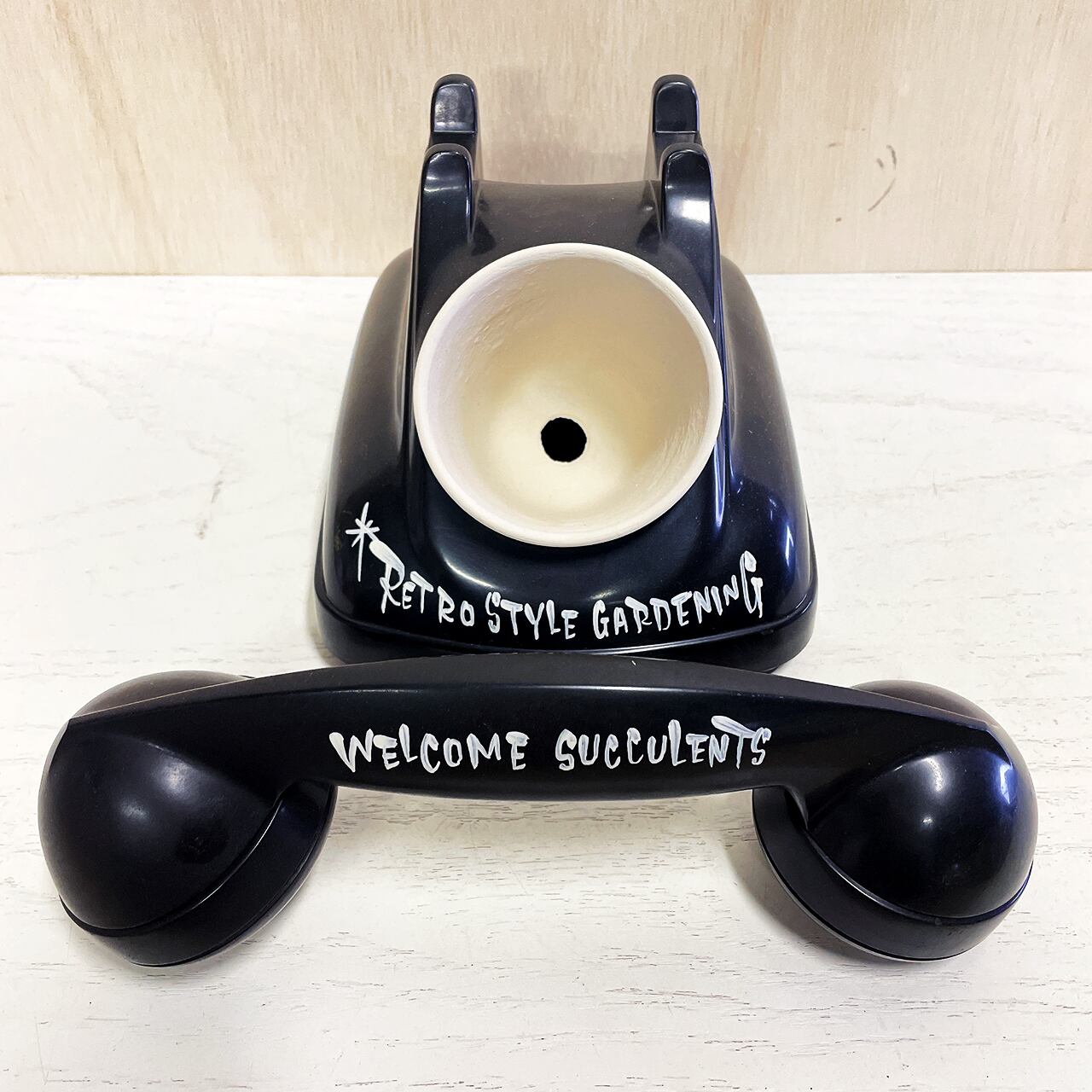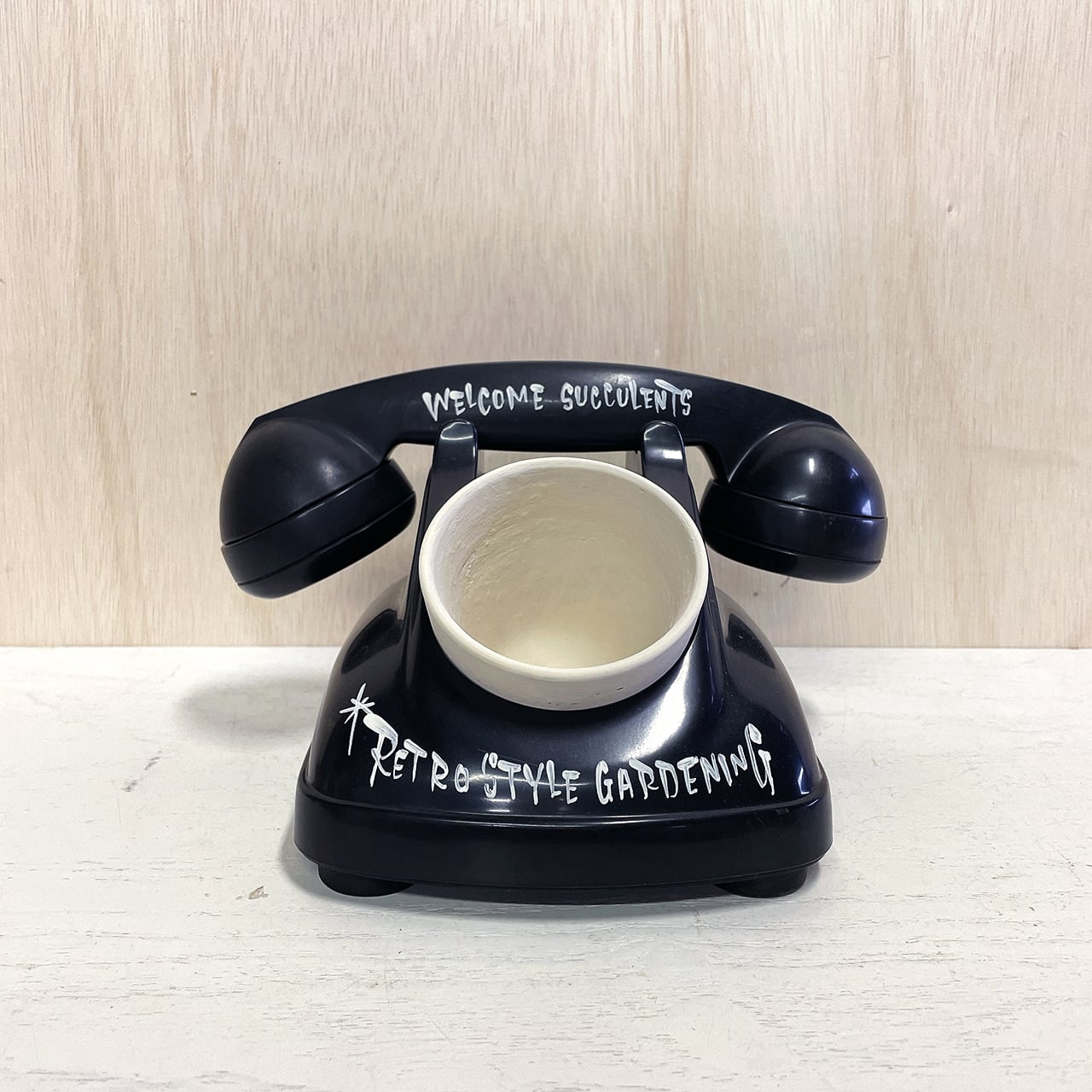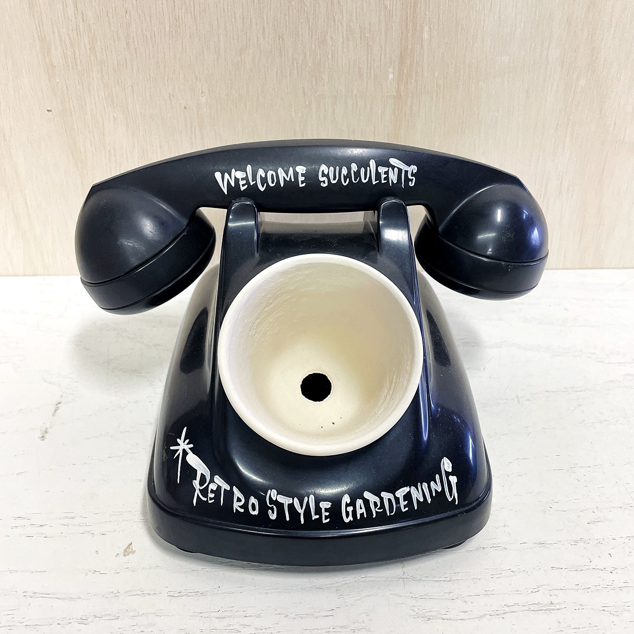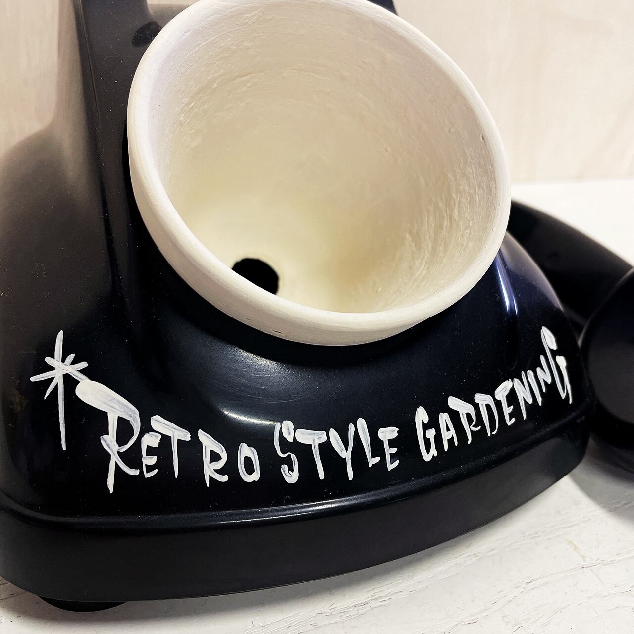 昭和レトロな黒電話のダイヤル部分をくり貫いて鉢をセット!!