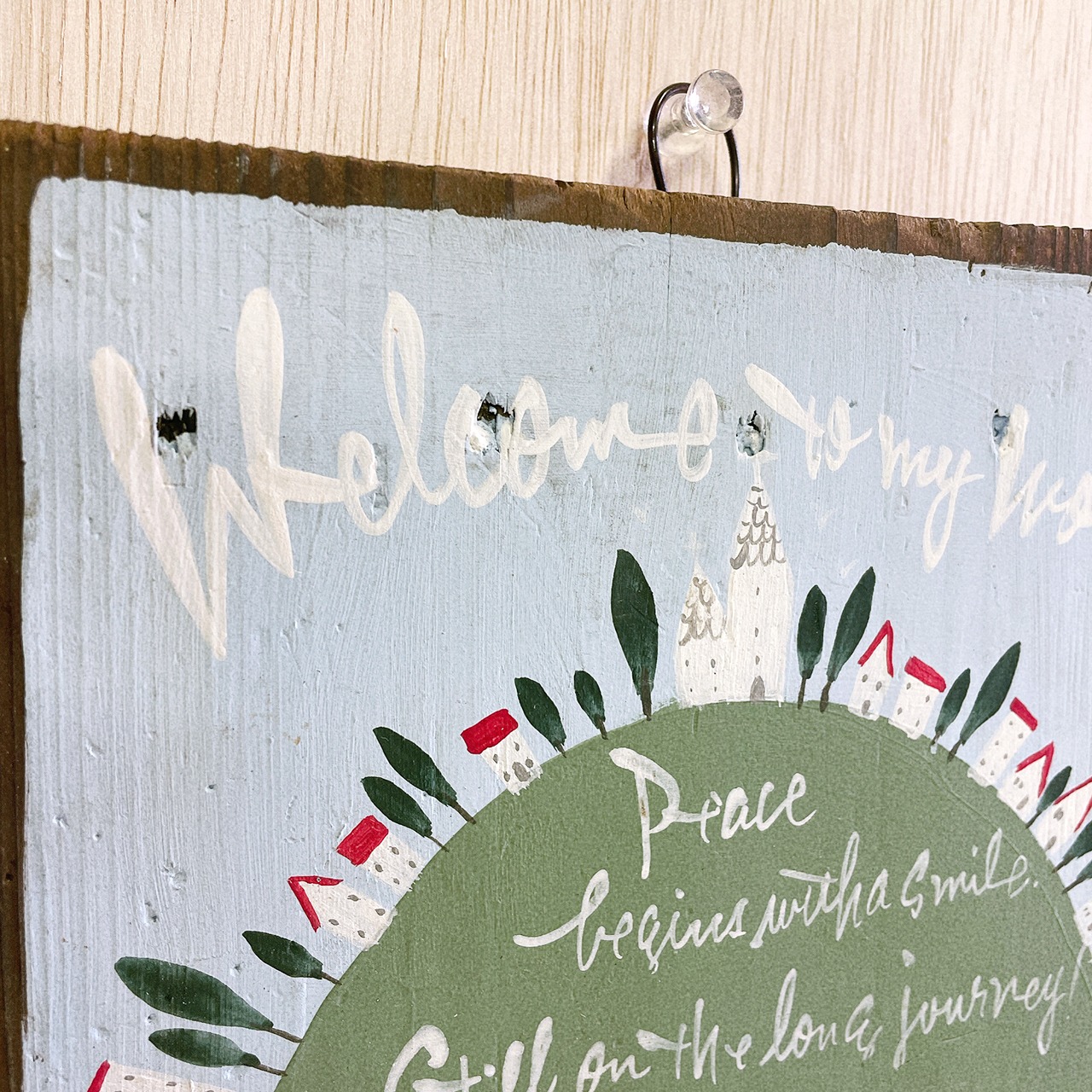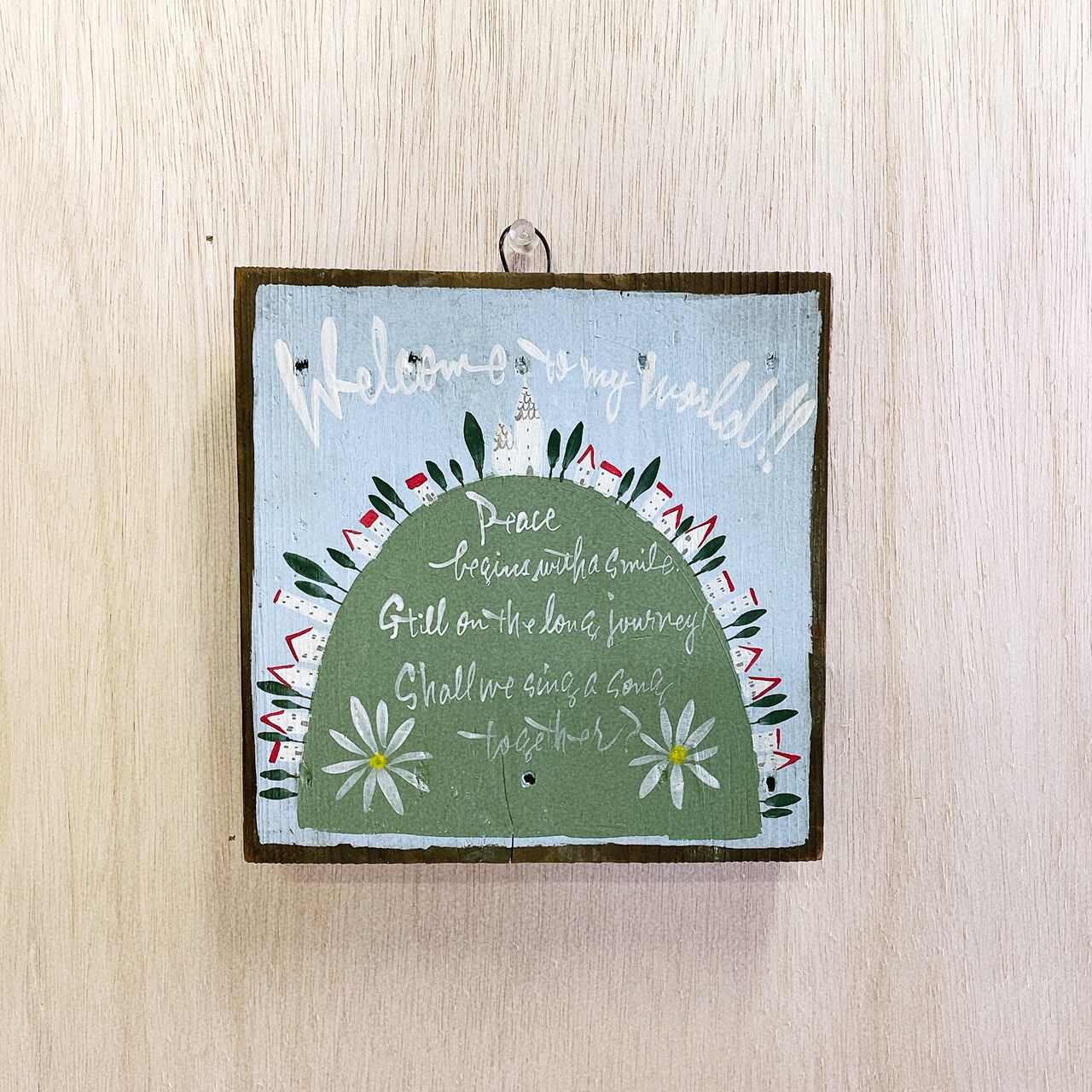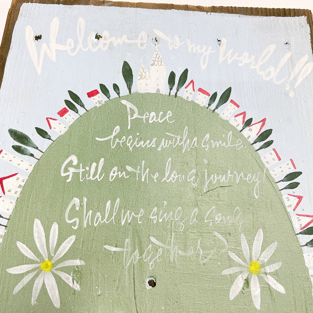 木製の台(作陶台)にペイントしたイラストパネルです♪