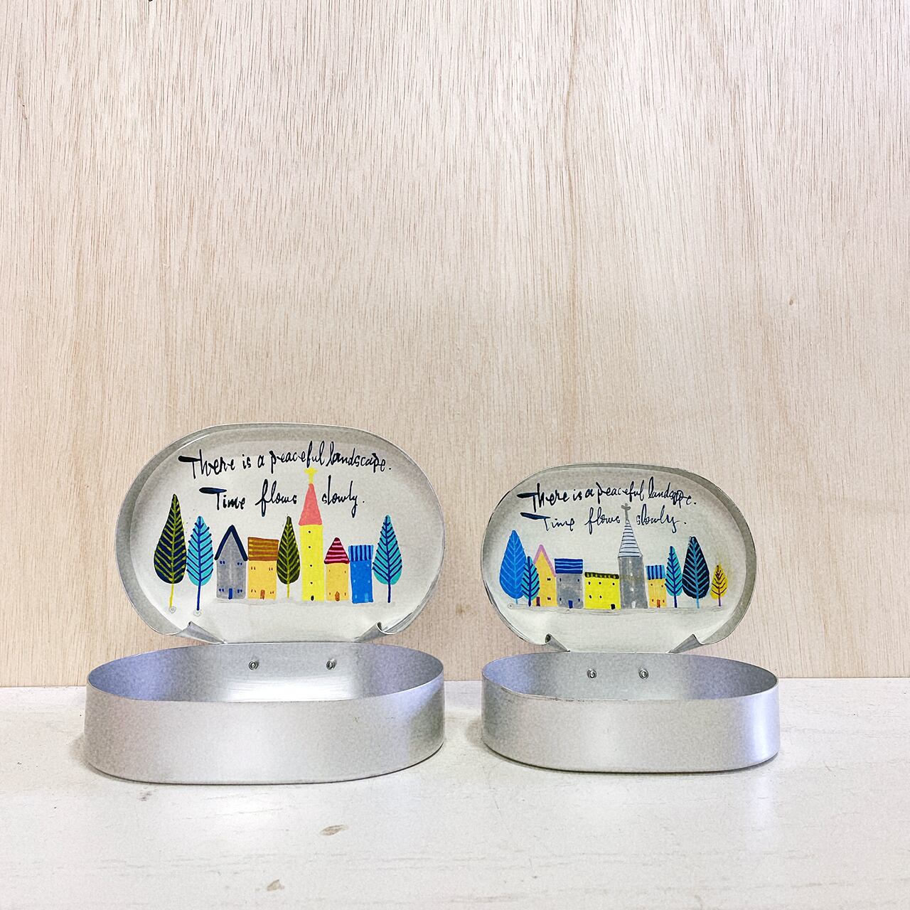 【リメイク古道具】アルミの弁当箱プランター 町並みシリーズ カラー