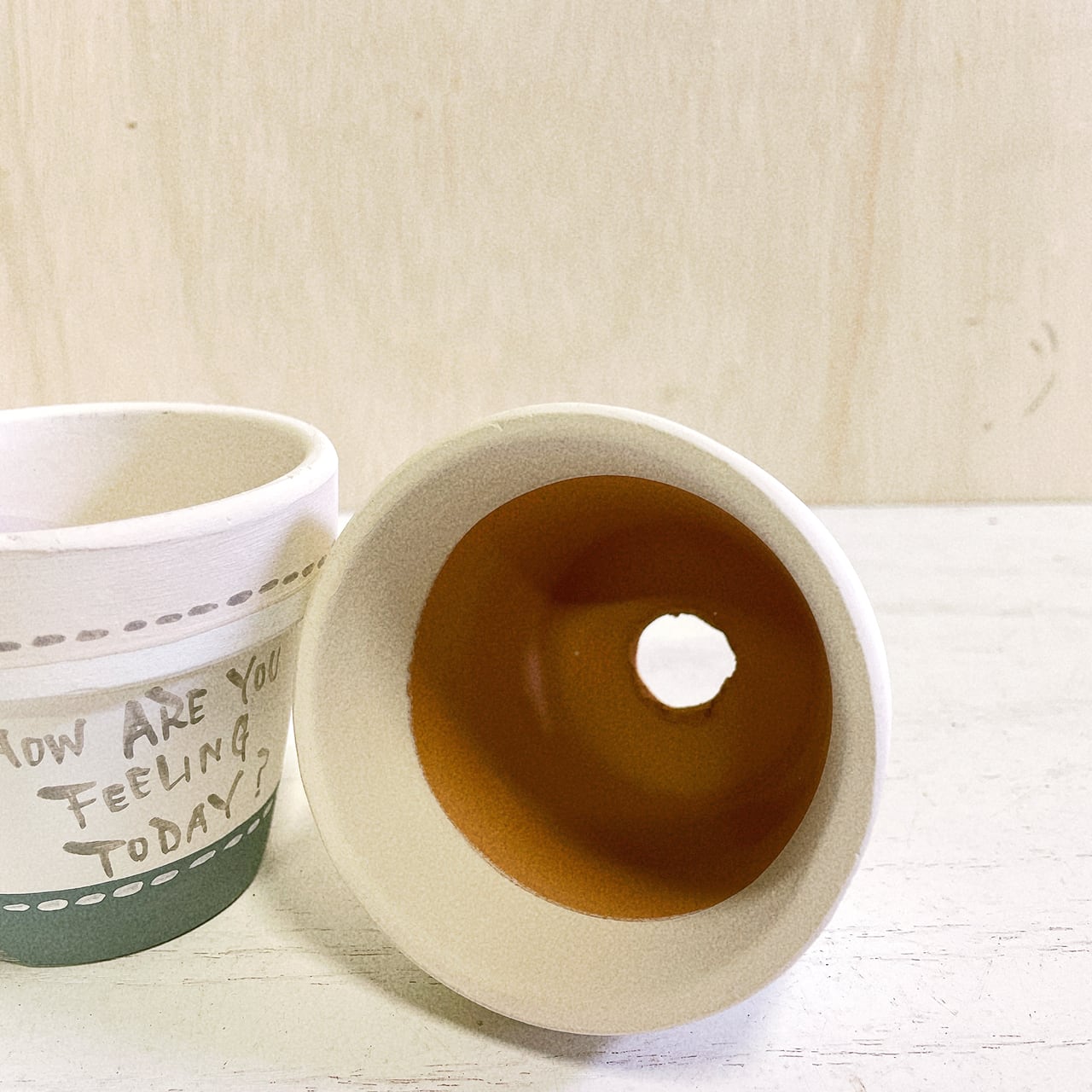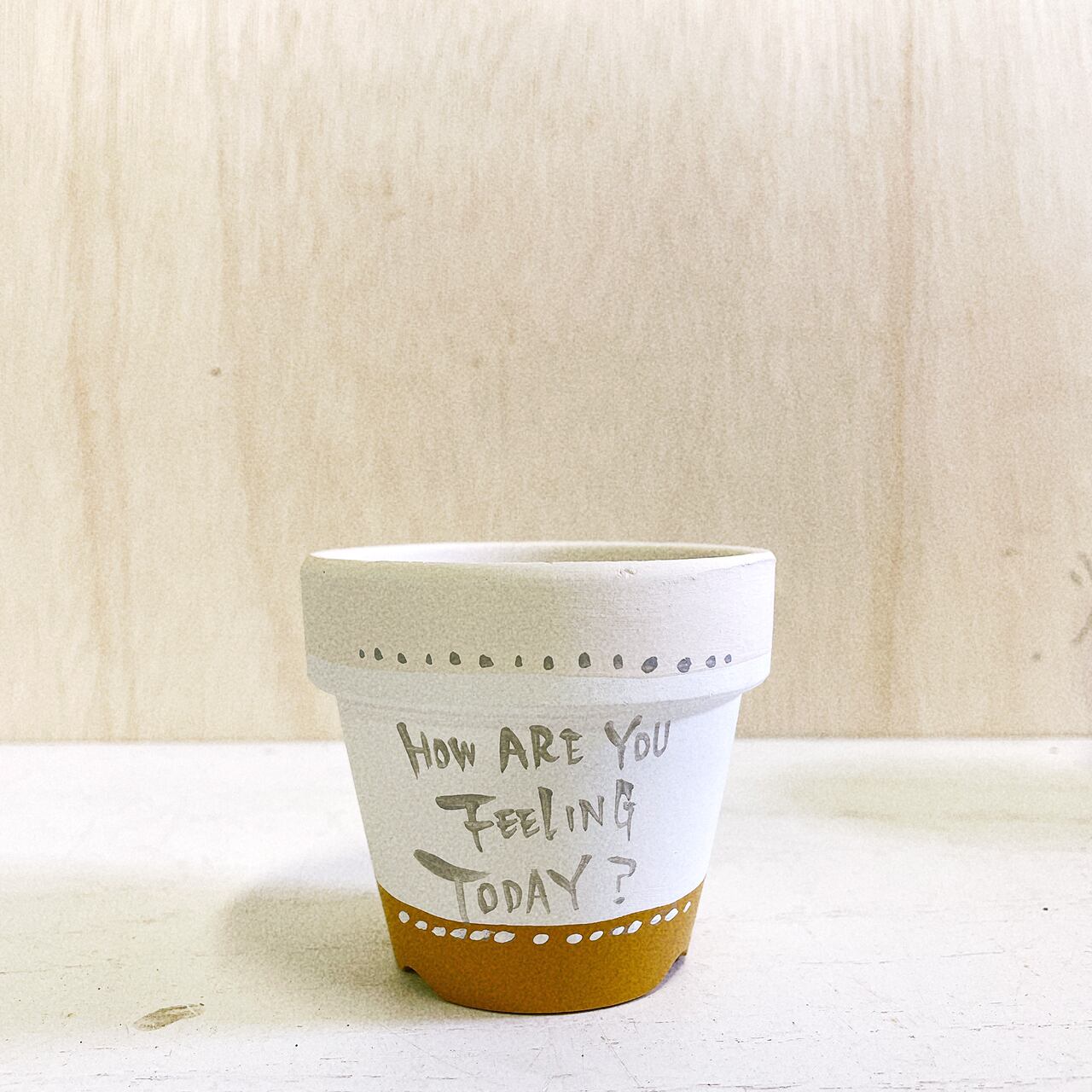 ペイントした2.5号鉢に文字入れした定番のリメ鉢。