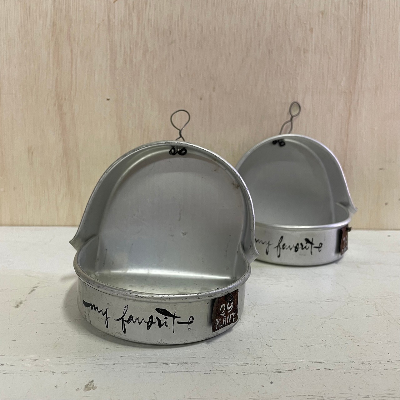 ハンゴウの中蓋を折り曲げて作ったプランターです♪
