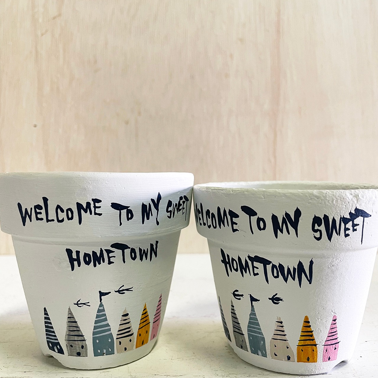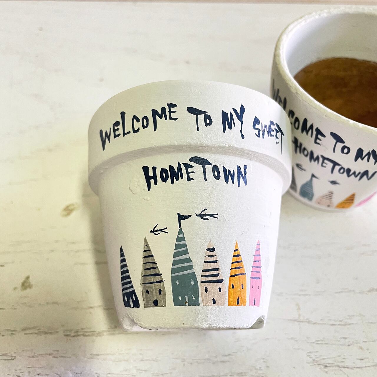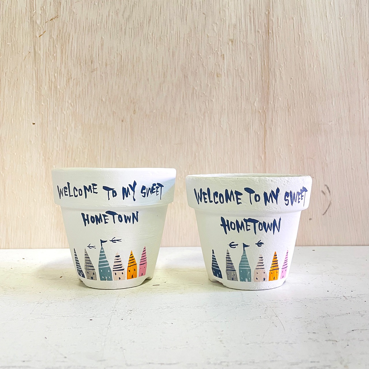 新作【リメイク鉢】USED2.5号丸鉢 町並みシリーズ