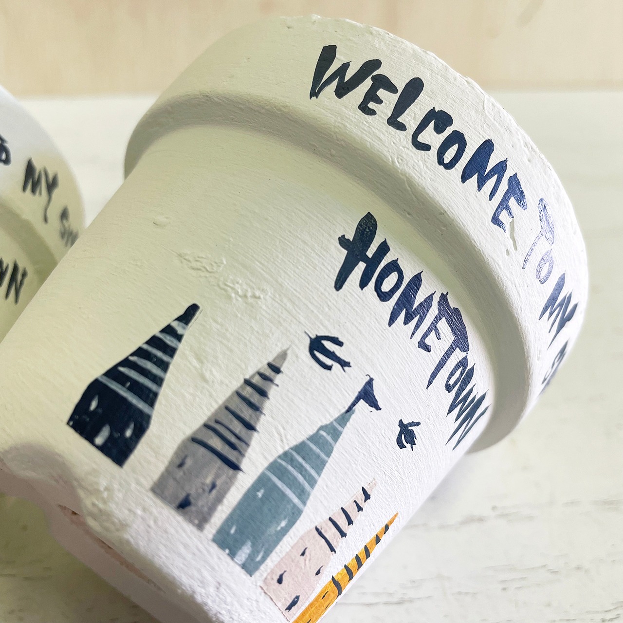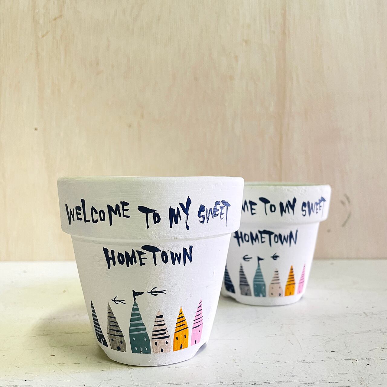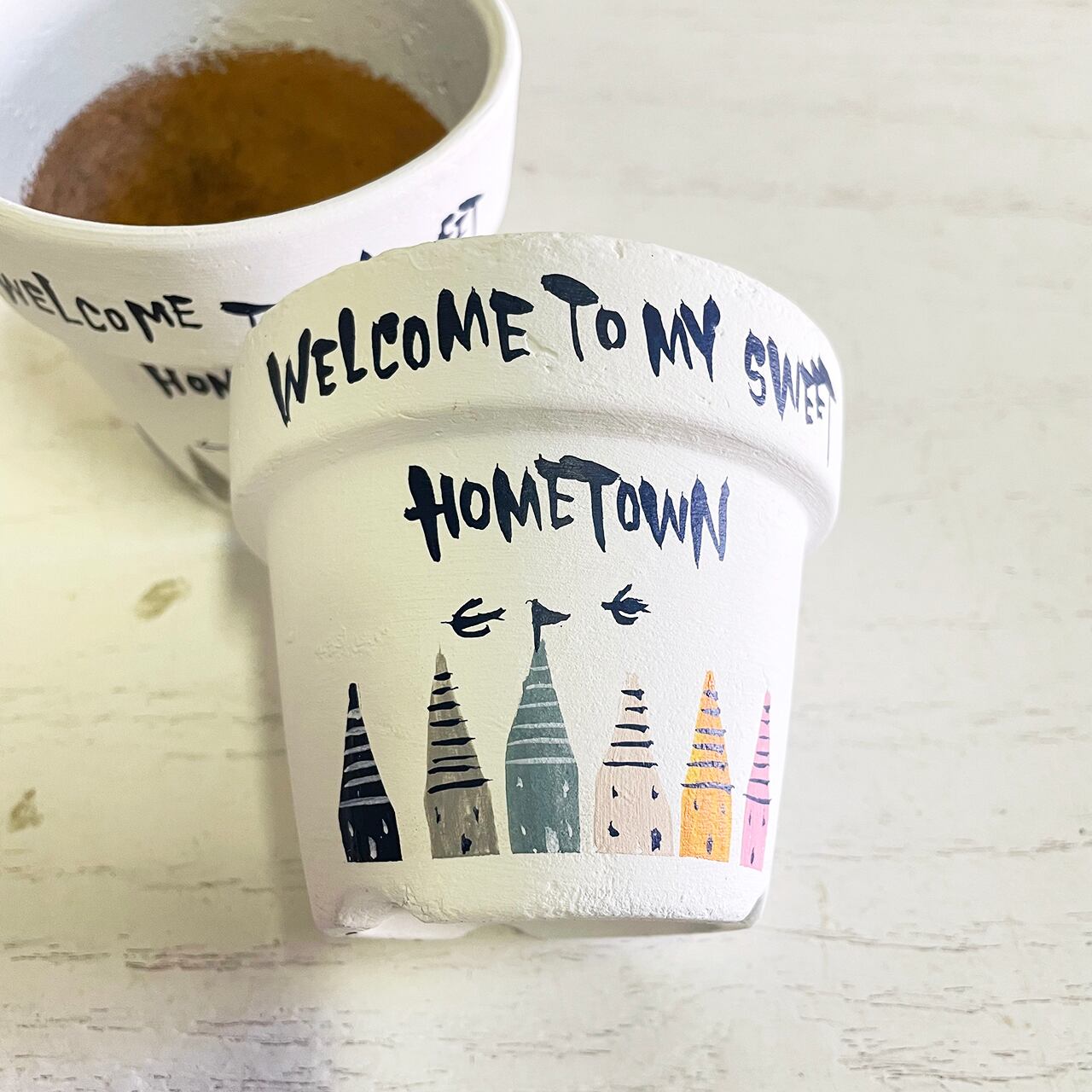 新作【リメイク鉢】USED2.5号丸鉢 町並みシリーズ