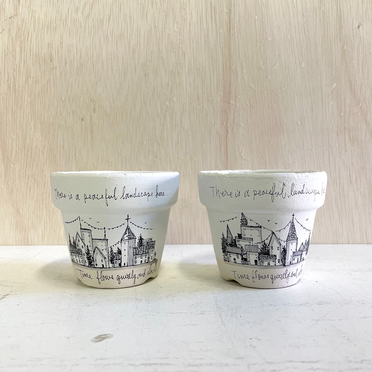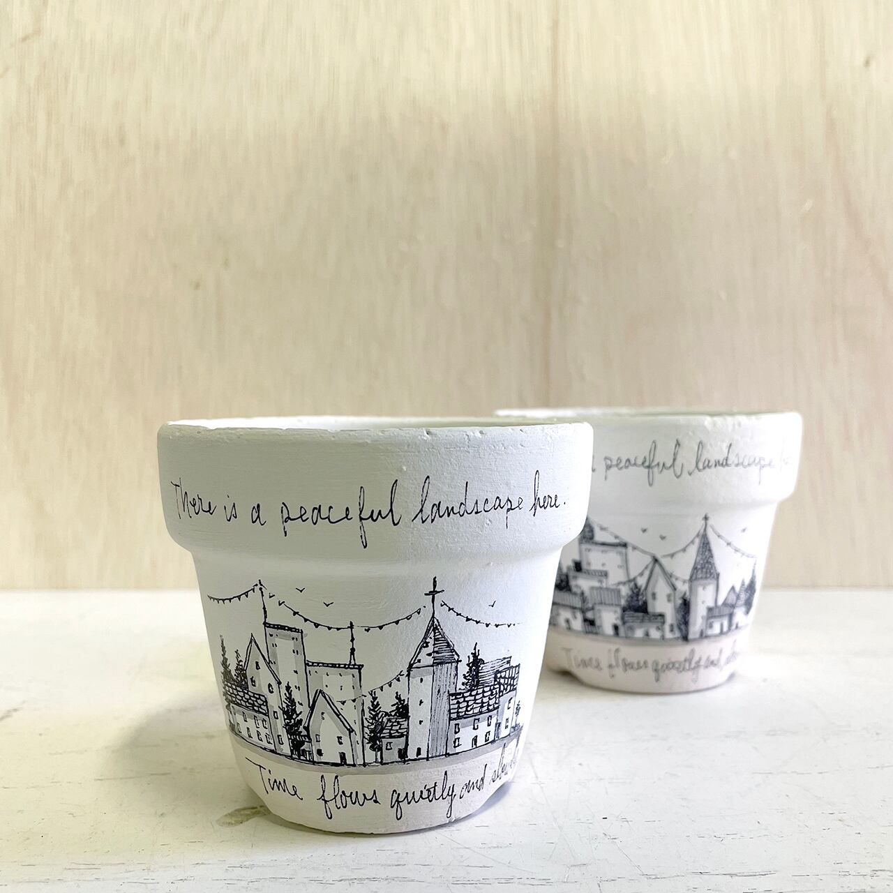 【リメイク鉢】USED2.5号丸鉢 リアル街並みシリーズ