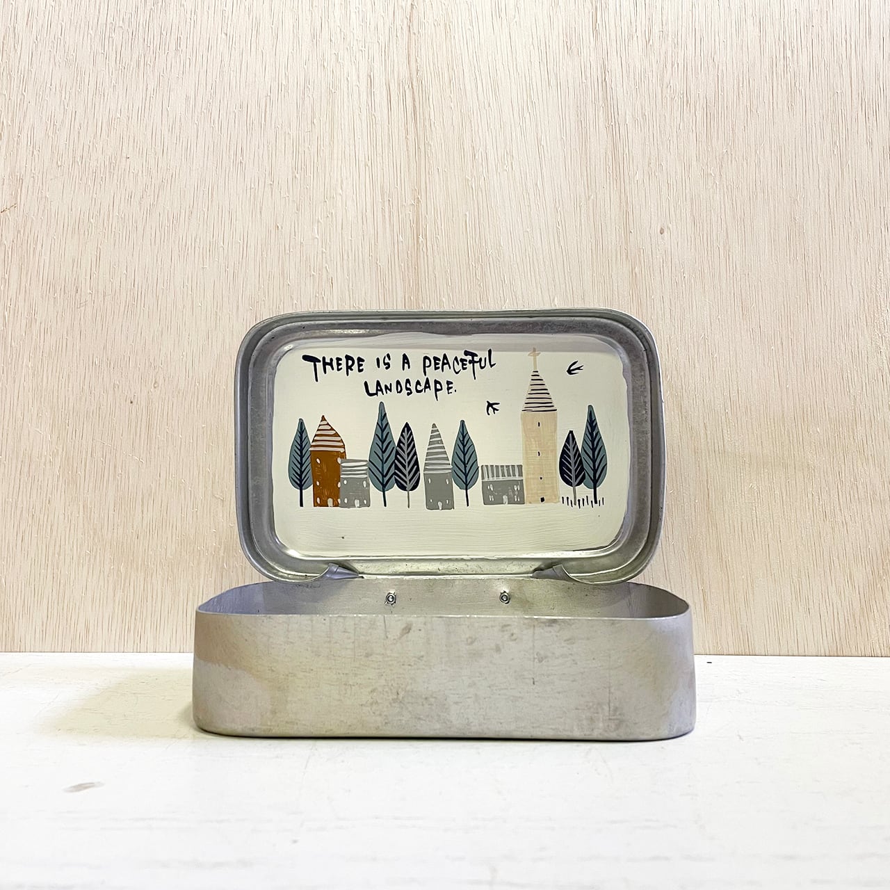 【リメイク古道具】アルミの弁当箱プランター 町並みシリーズ