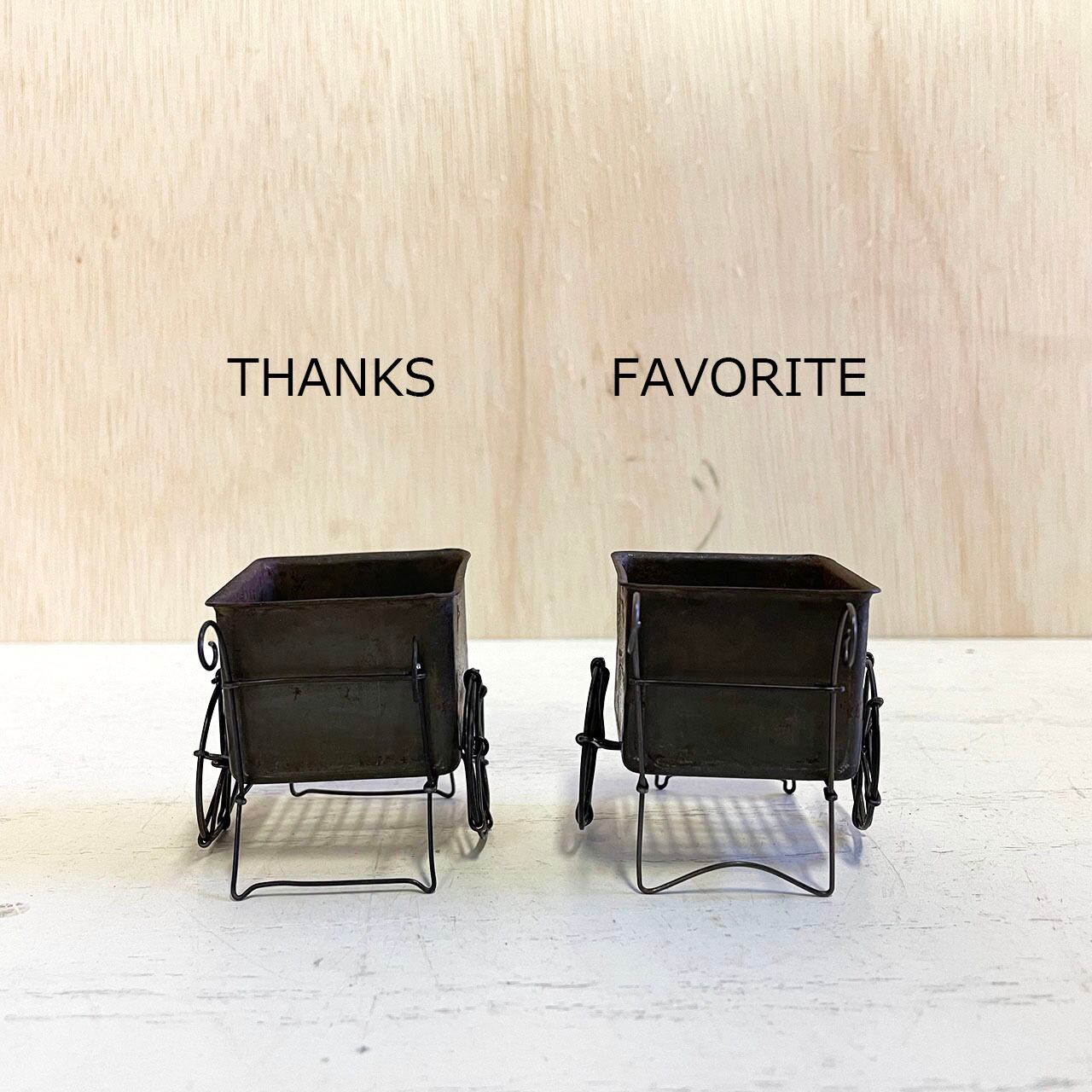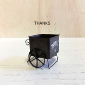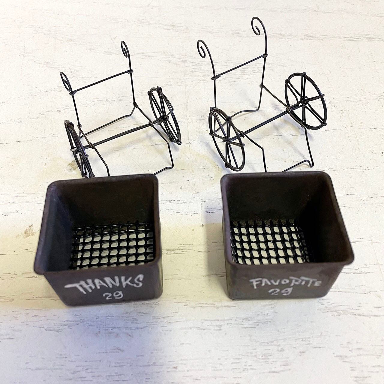 ワイヤーで作った手押し車に小さなBOXを乗せたミニミニプランターです!