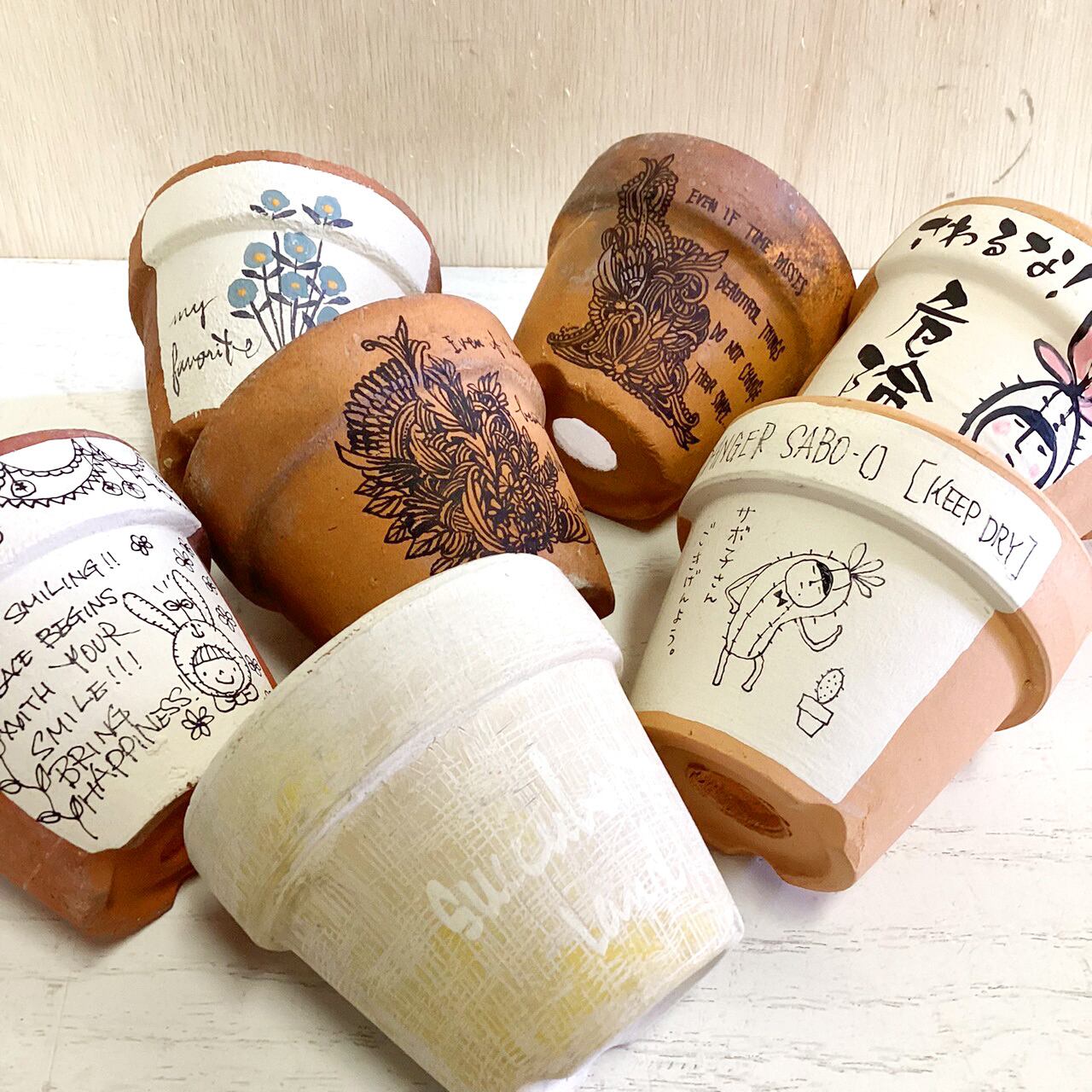 【リメイク鉢】2.5号丸鉢〔試作品・見本品・訳あり品〕7点セット