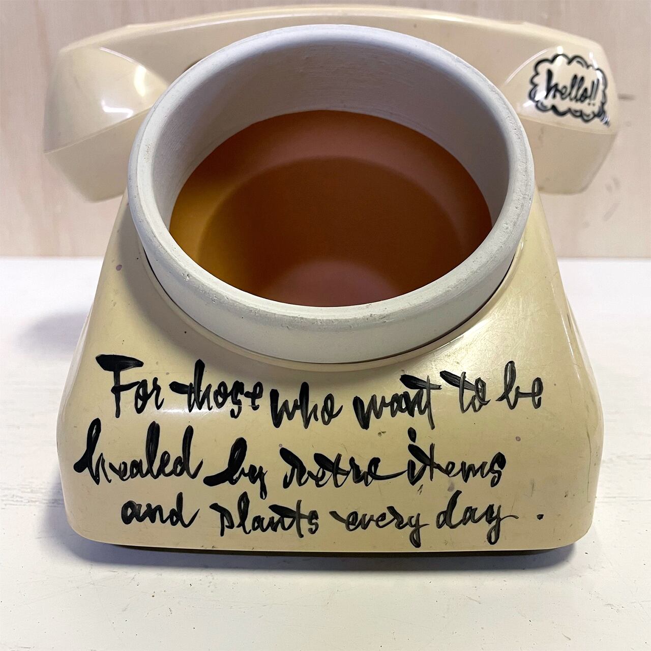 昭和レトロな電話のダイヤル部分をくり貫いて鉢をセット!!